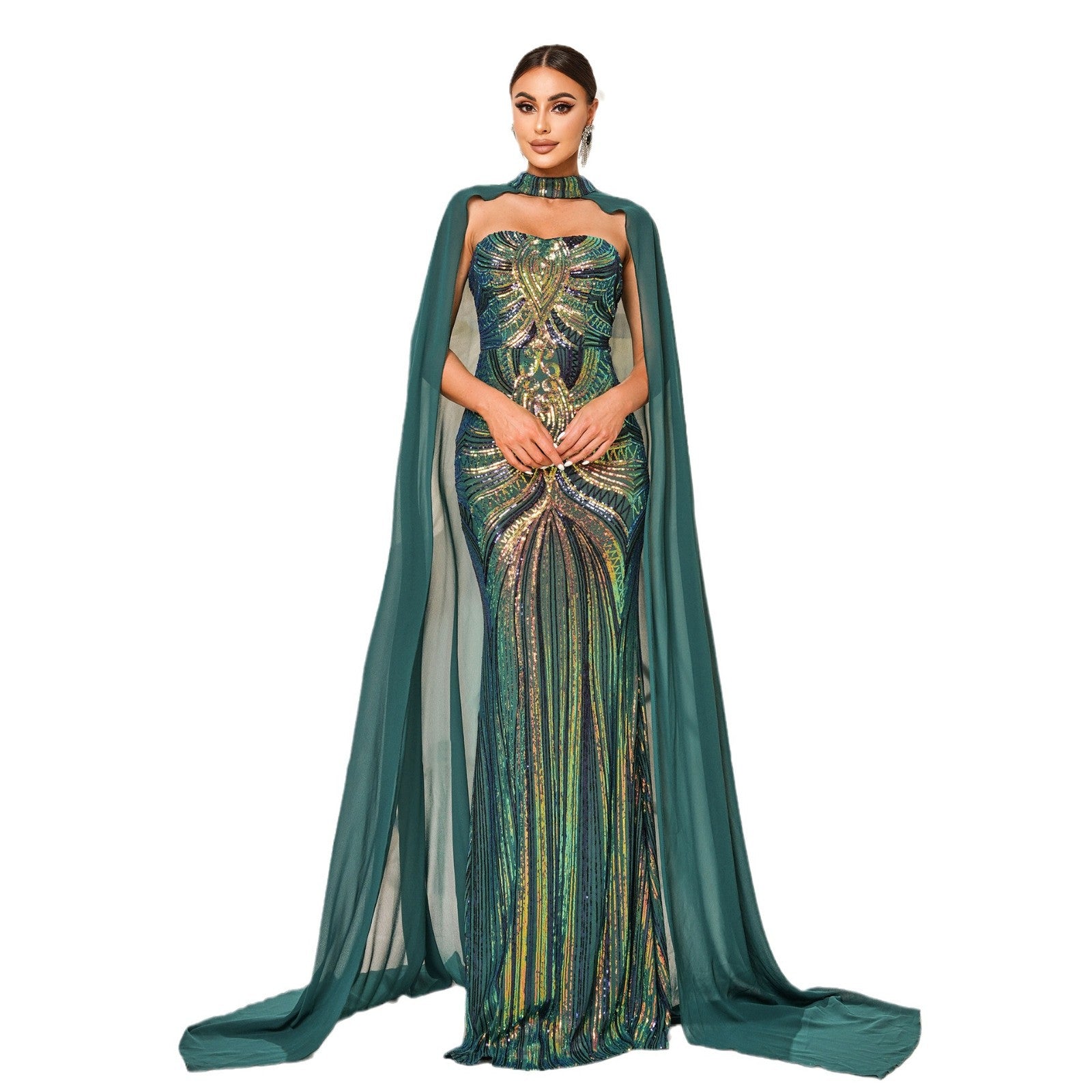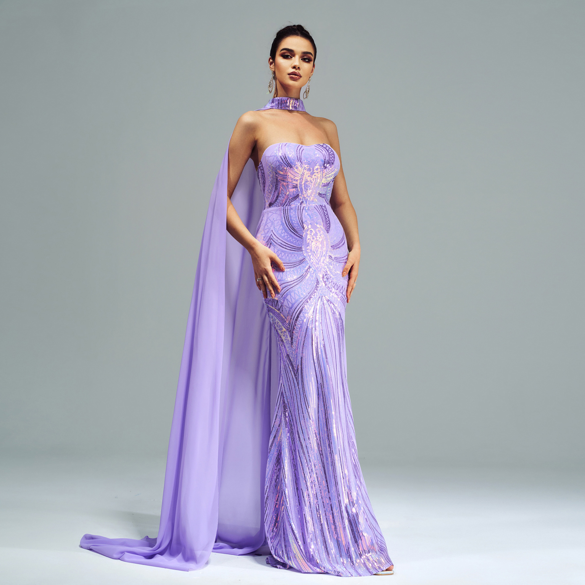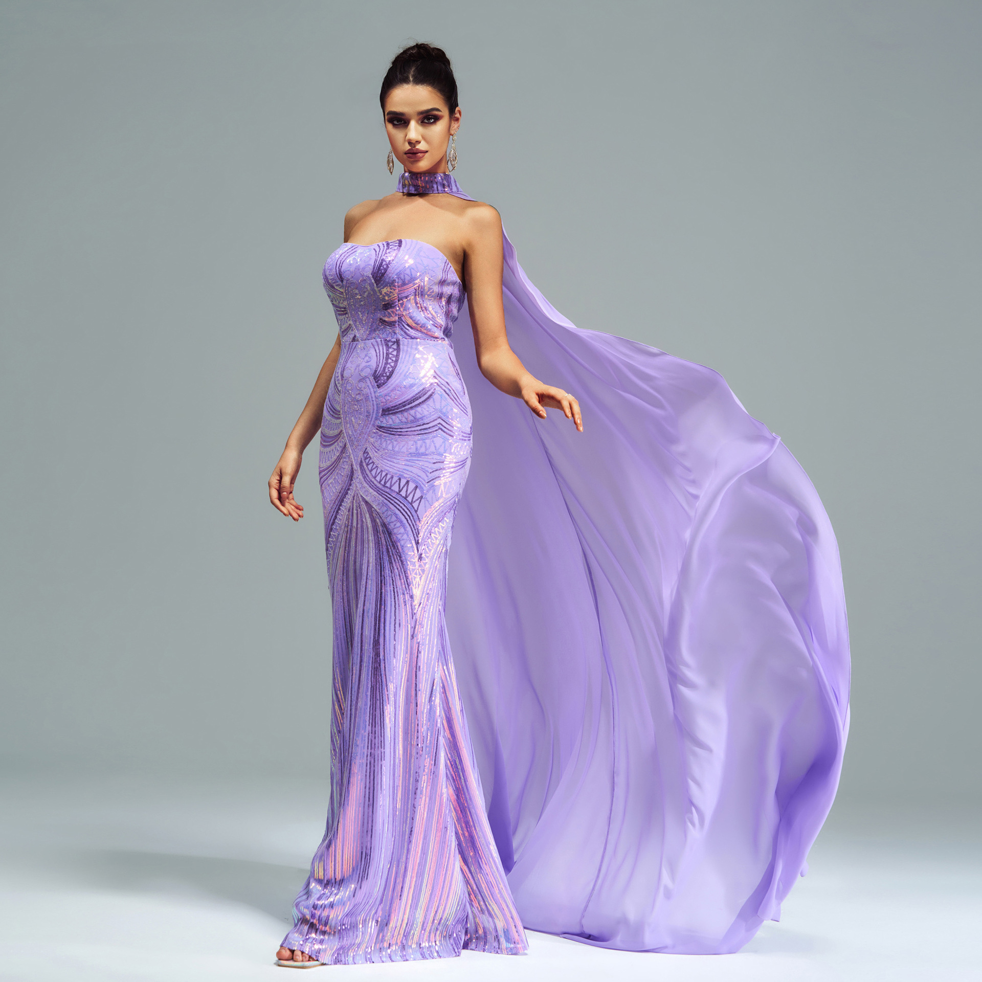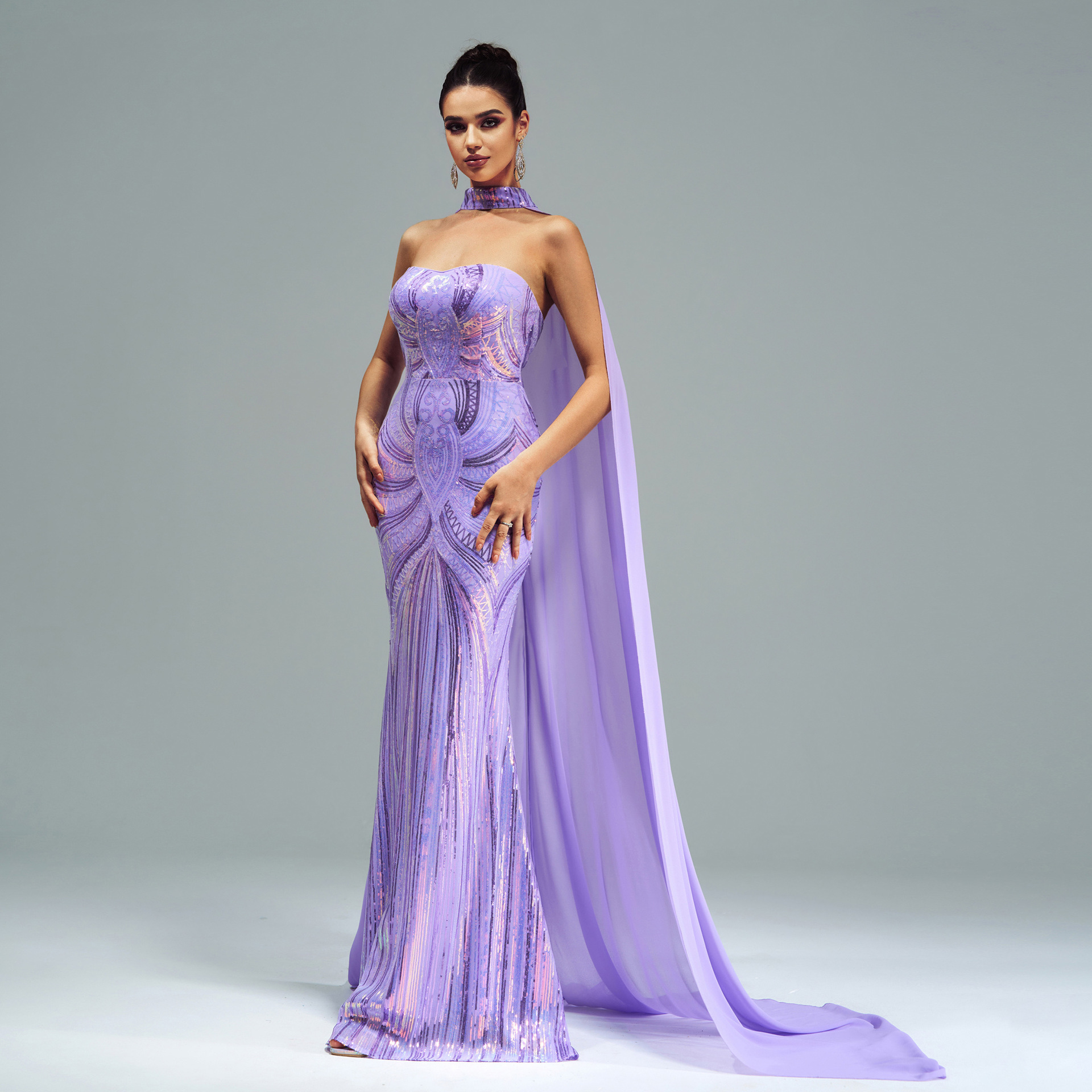 فستان جديد أوروبي وأمريكي بأكمام طويلة ورقبة دائرية مزين بالترتر