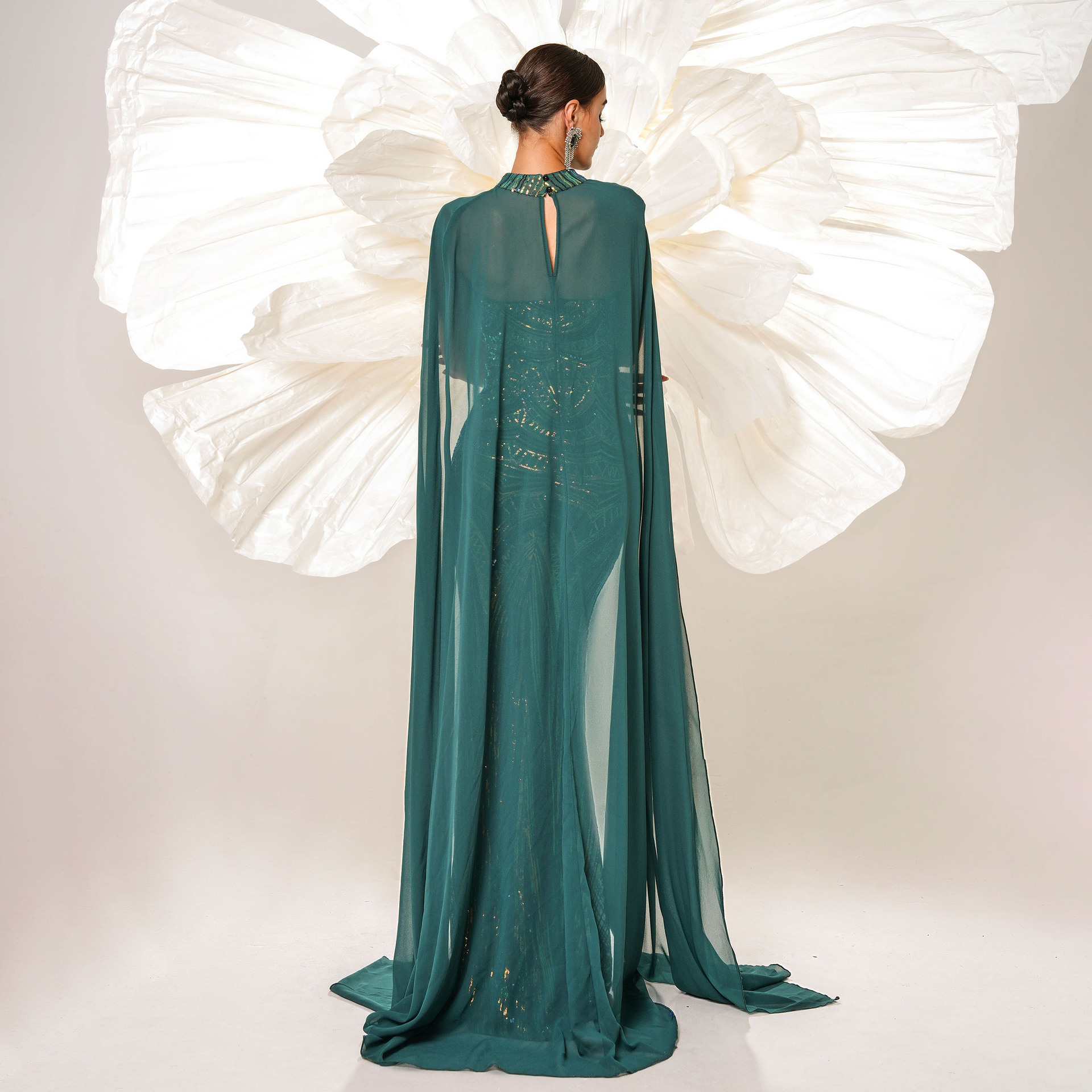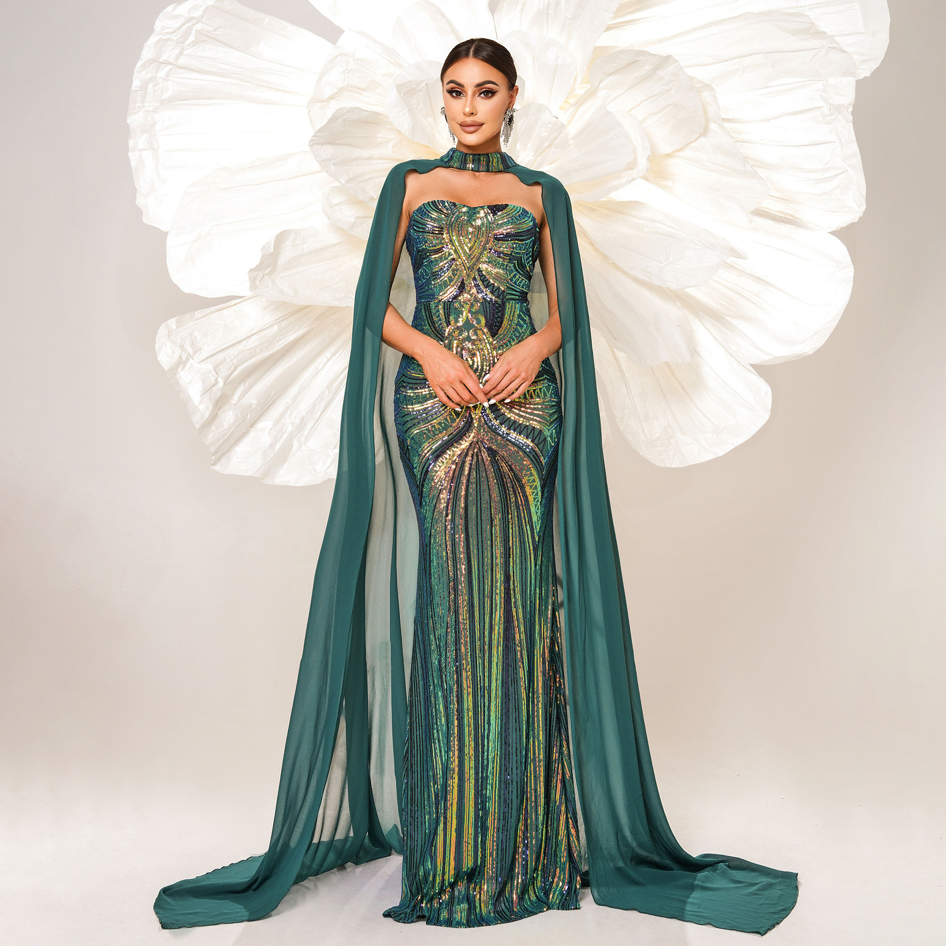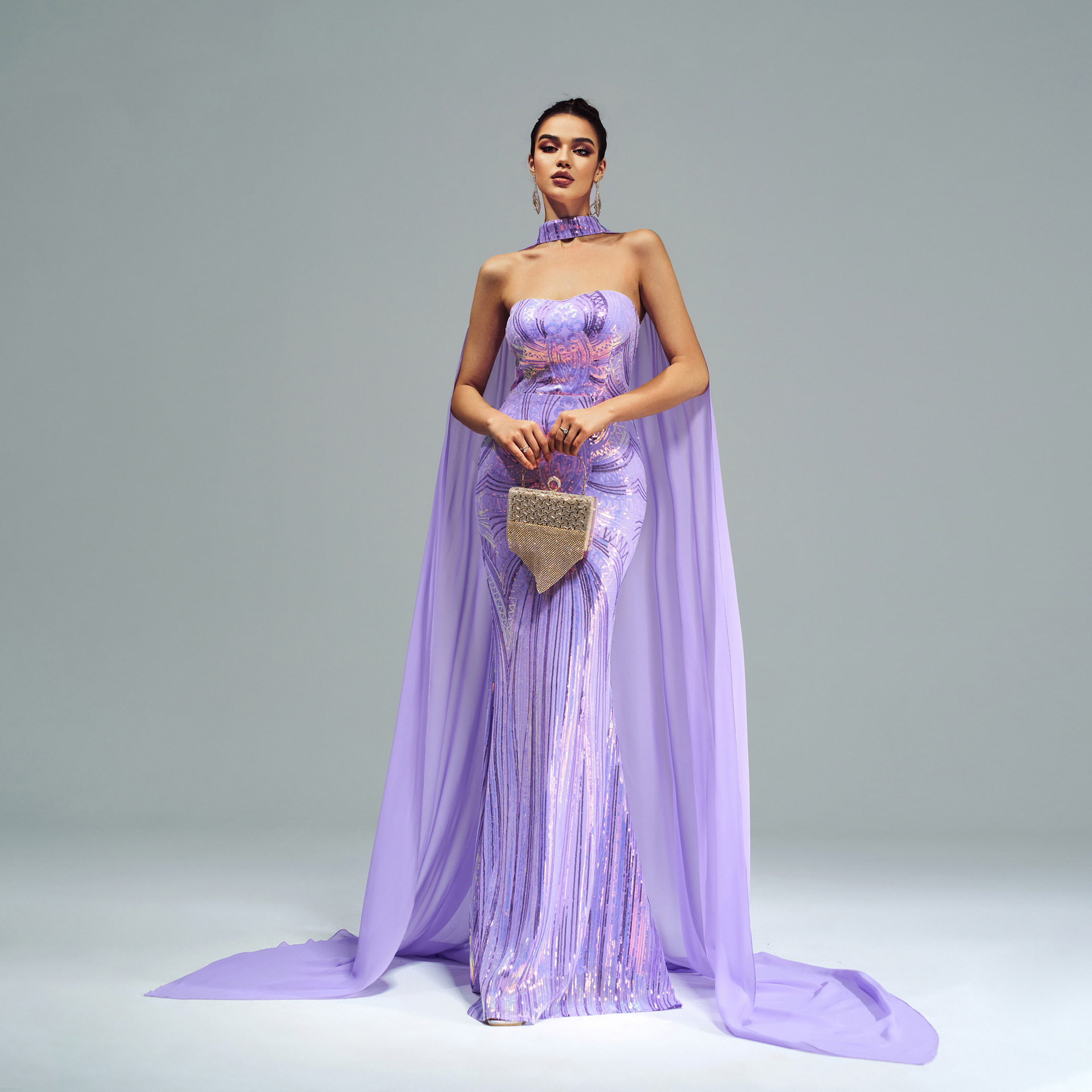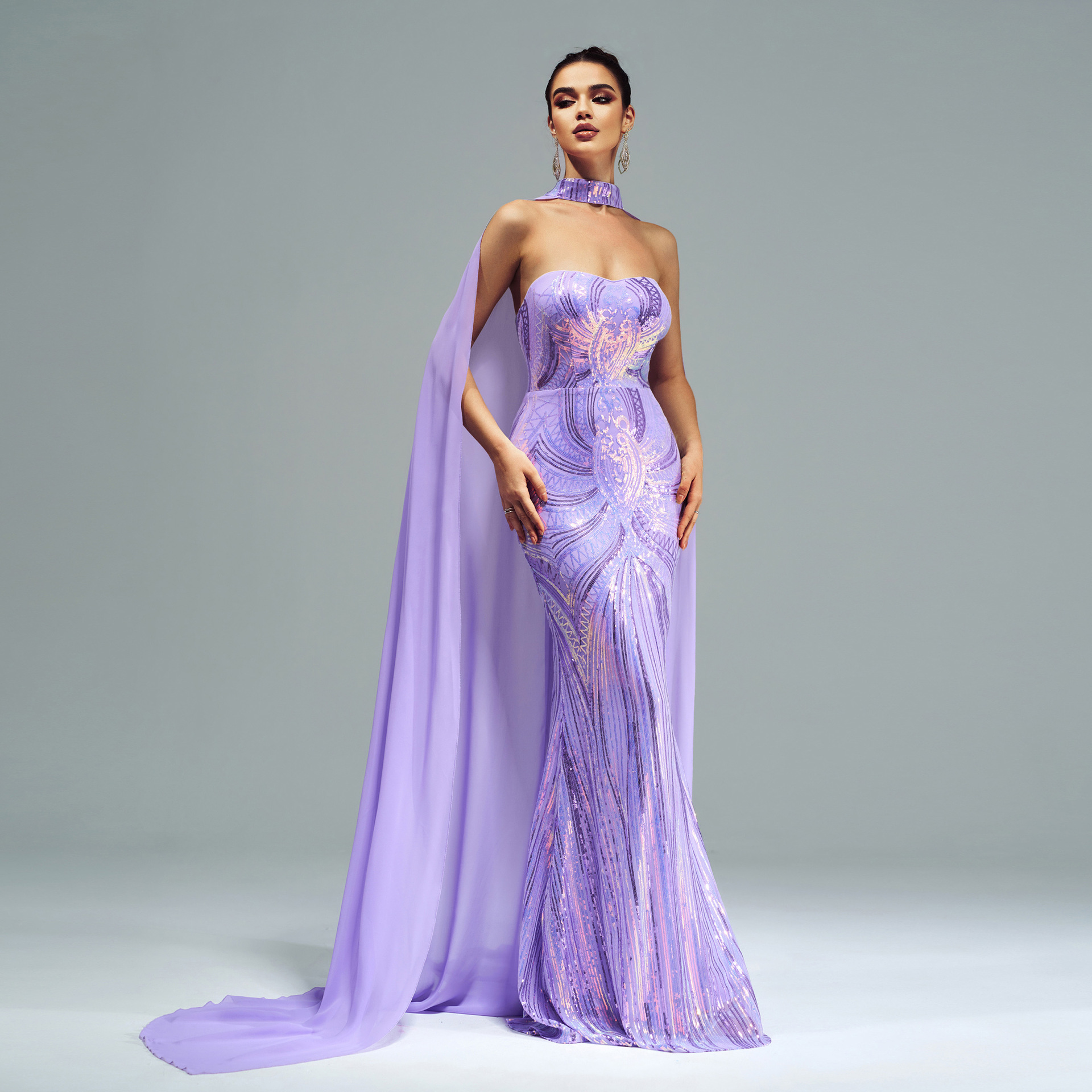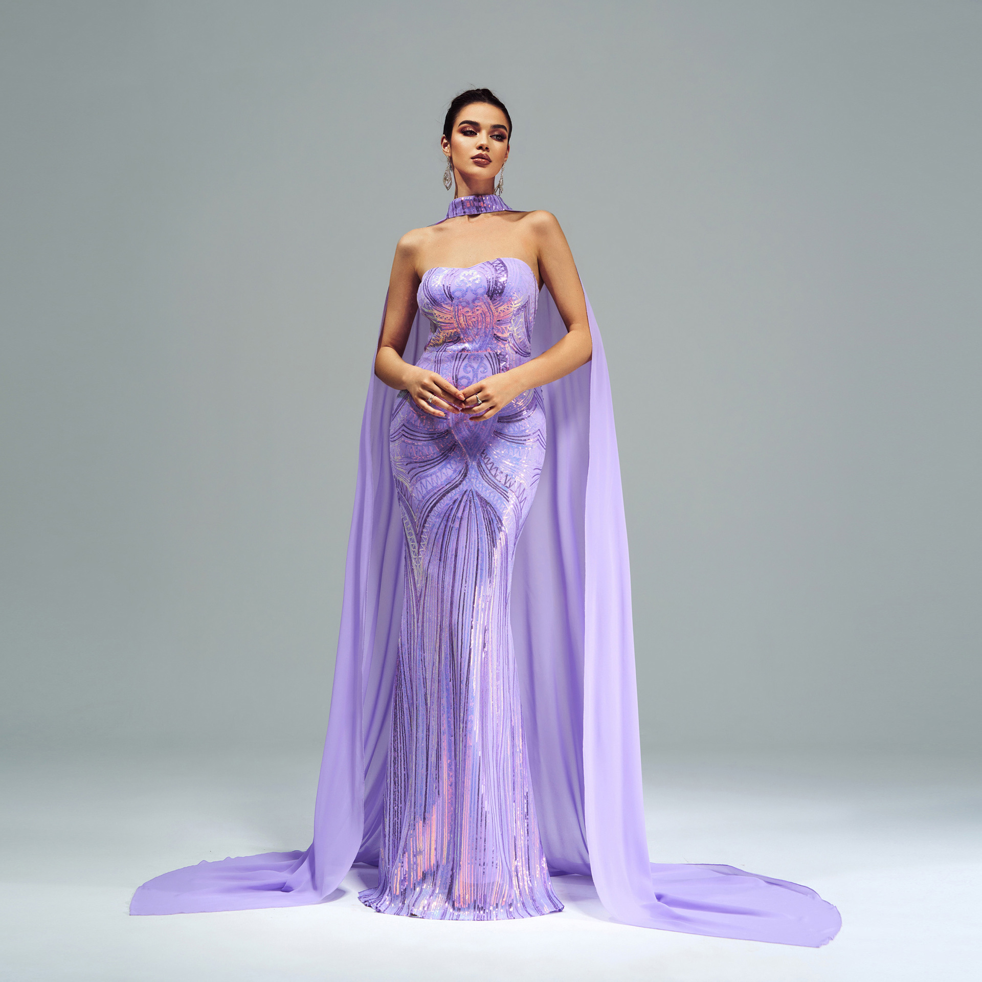 فستان جديد أوروبي وأمريكي بأكمام طويلة ورقبة دائرية مزين بالترتر