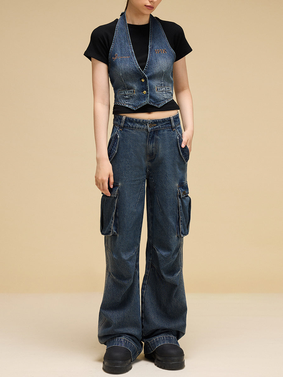 أفرول جينز فضفاض واسع الساقين مناسب للصناعات الثقيلة