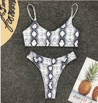 طقم سباحة من قطعتين بنقشة جلد النمر