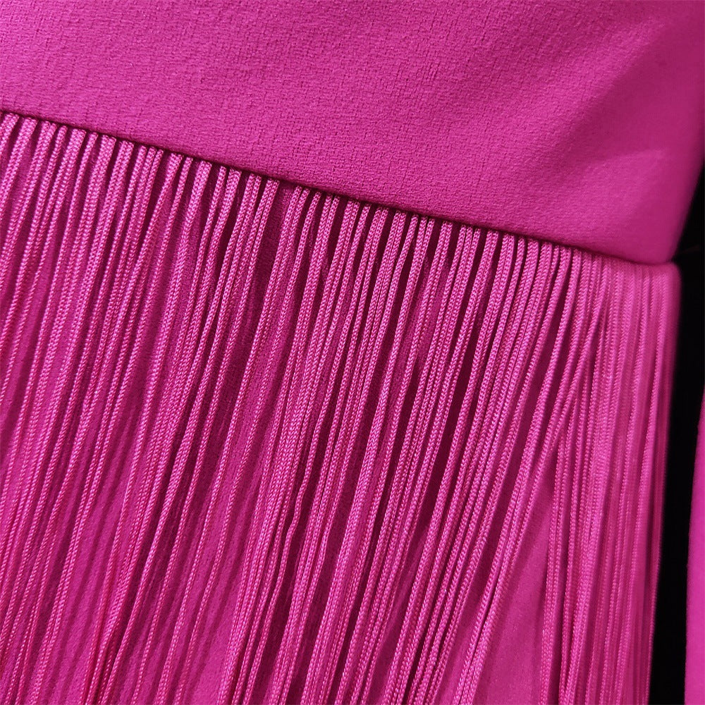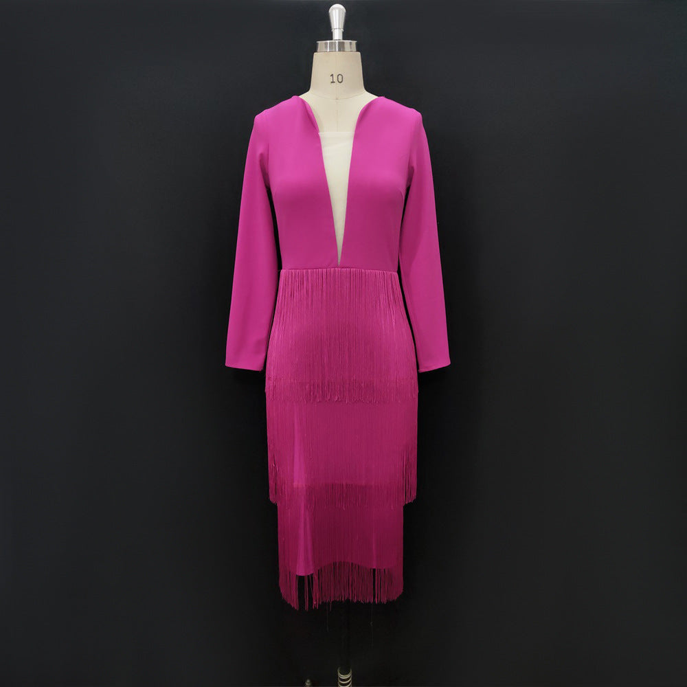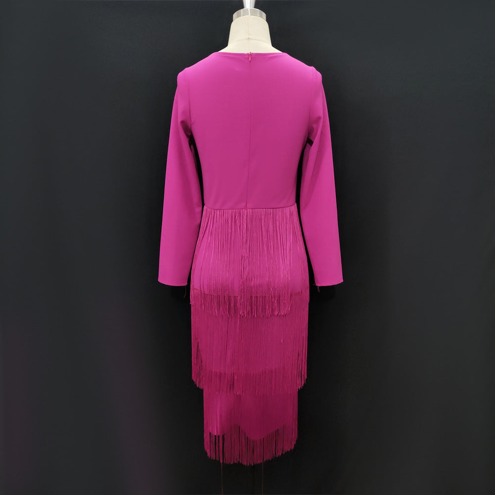 فستان طويل الأكمام مزين بشراشيب