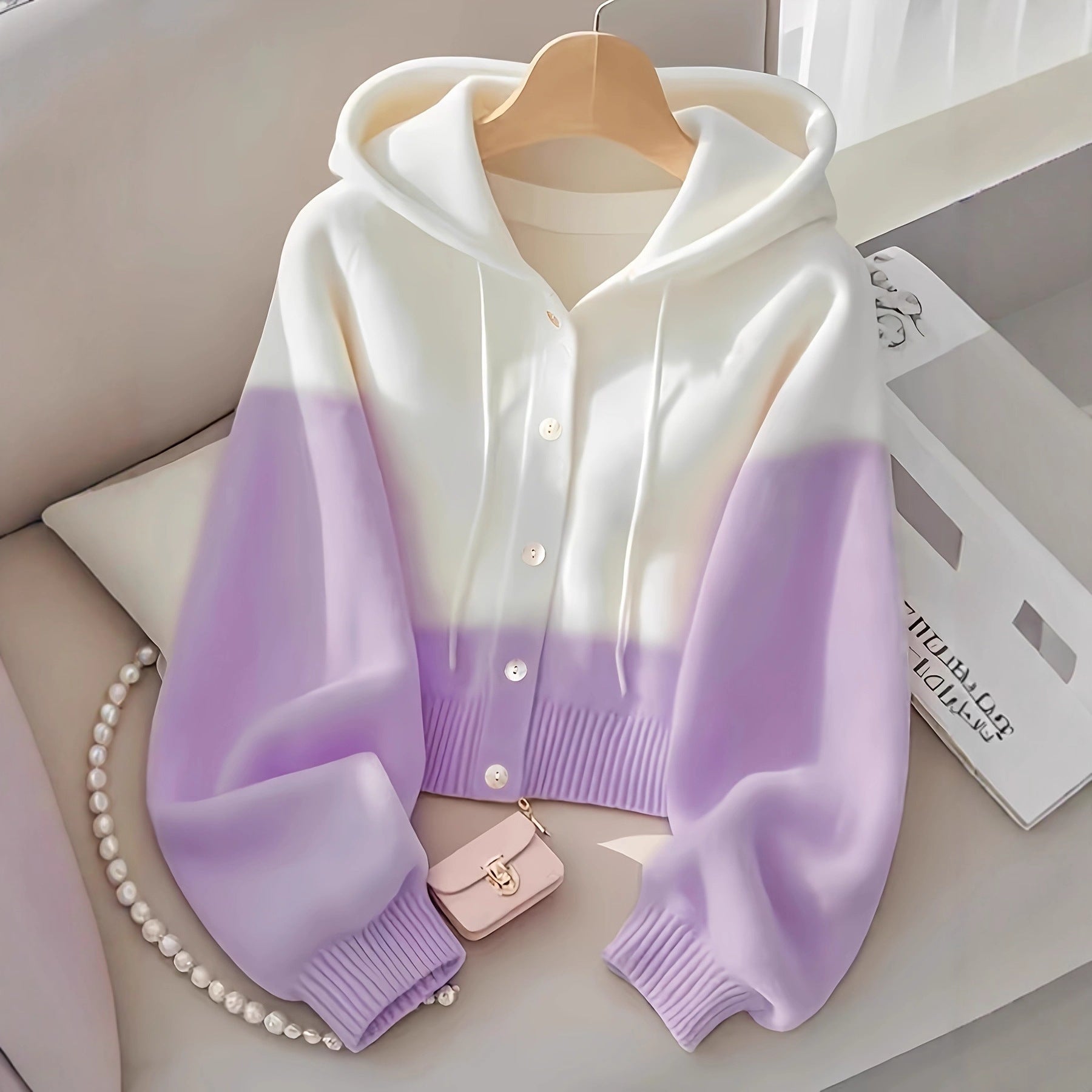 بلوزة محبوكة عالية الجودة بغطاء رأس مرقعة