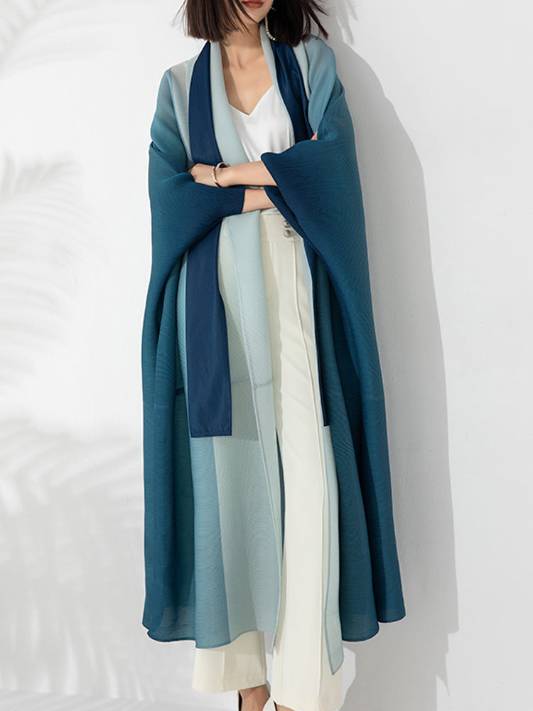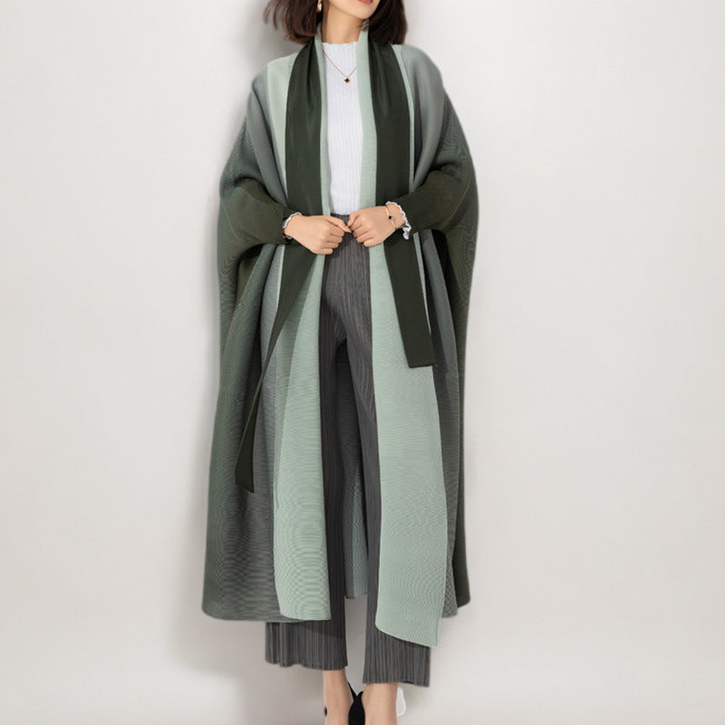 معطف ترنش مطوي للنساء العربيات، خريفي جديد، لون متدرج، فضفاض