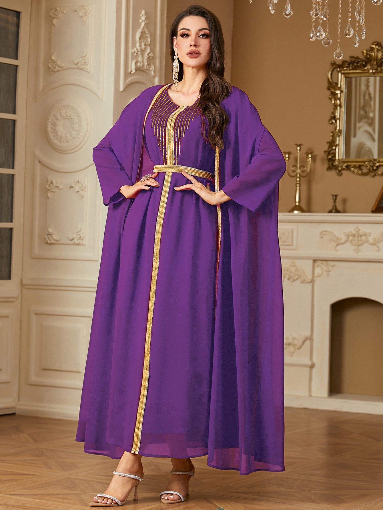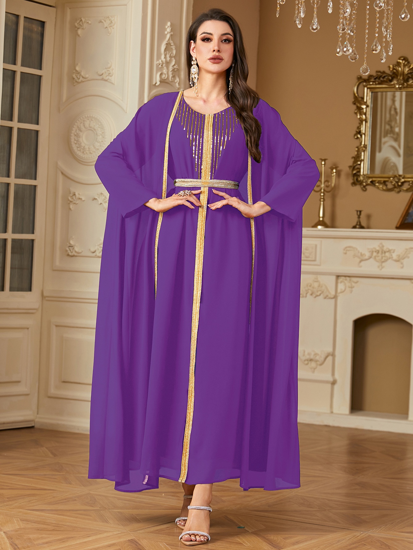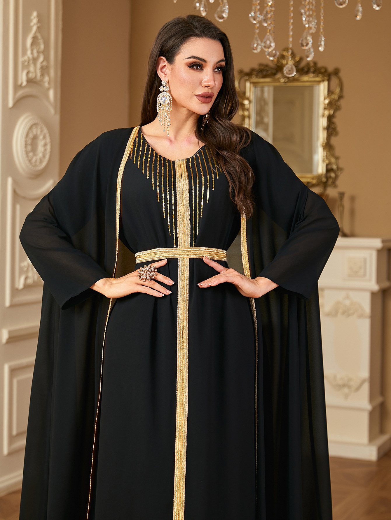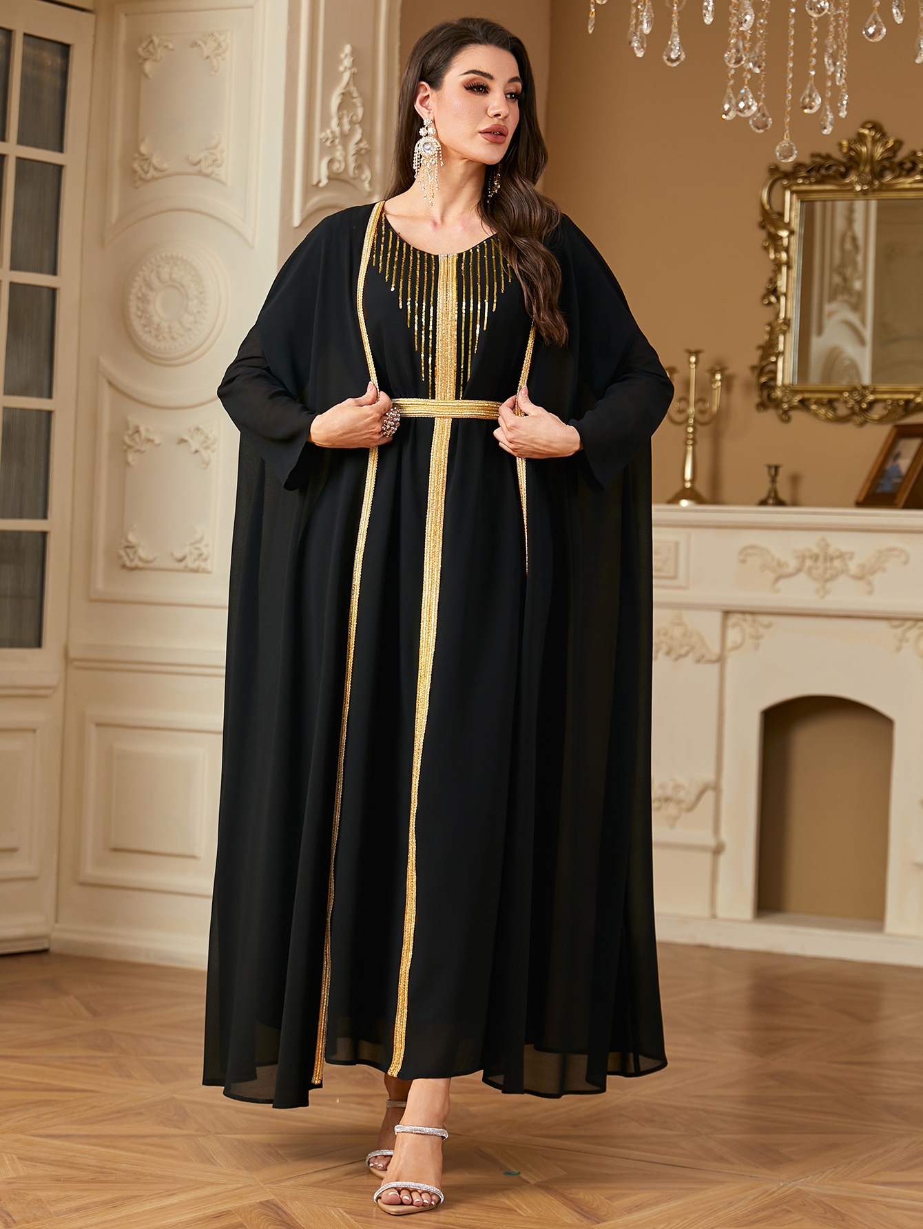 طقم عباية من قطعتين من الشيفون المطرز بالترتر
