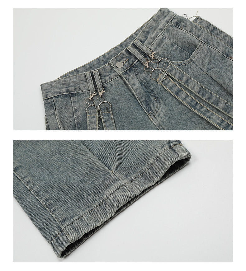 بنطال كاجوال متعدد الاستخدامات بتصميم شريط الأقليات ذي الطابع الكلاسيكي الربيعي، مغسول وممزق
