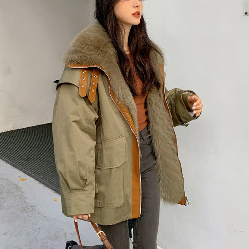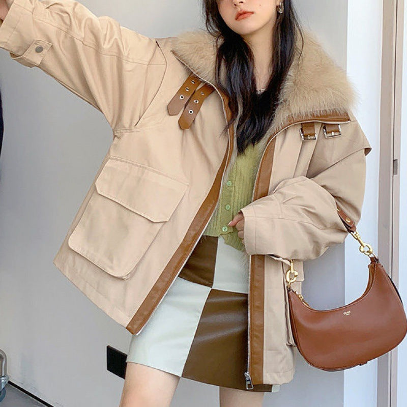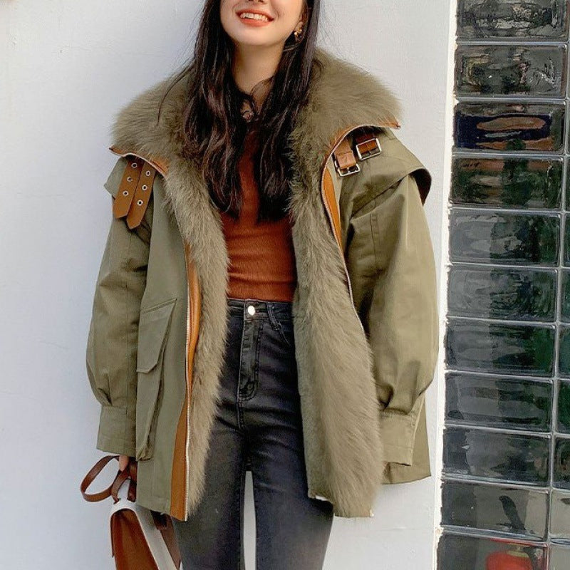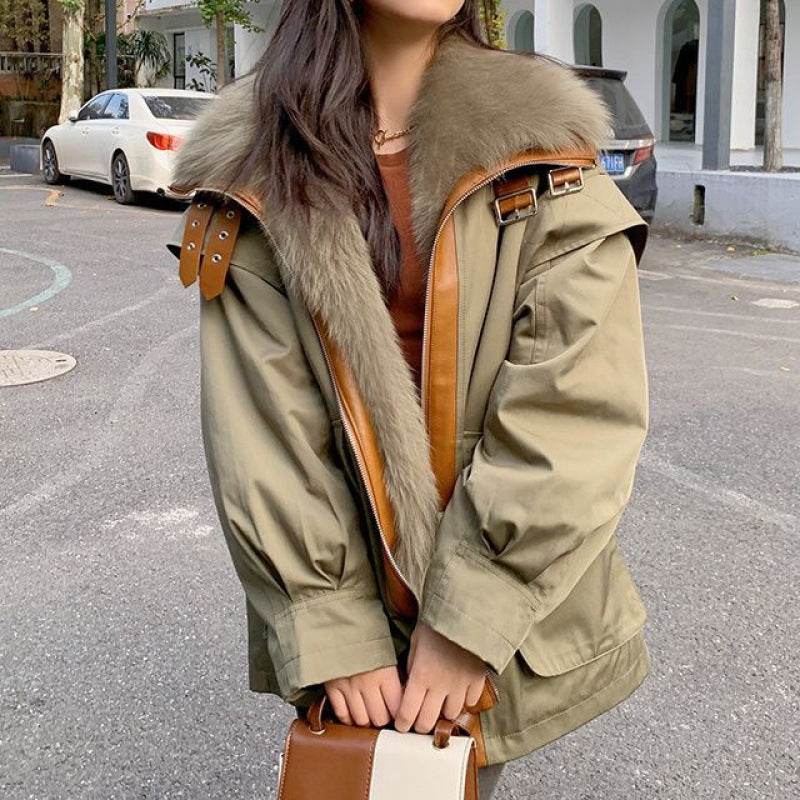 معطف نسائي قابل للفصل من الفرو الصناعي