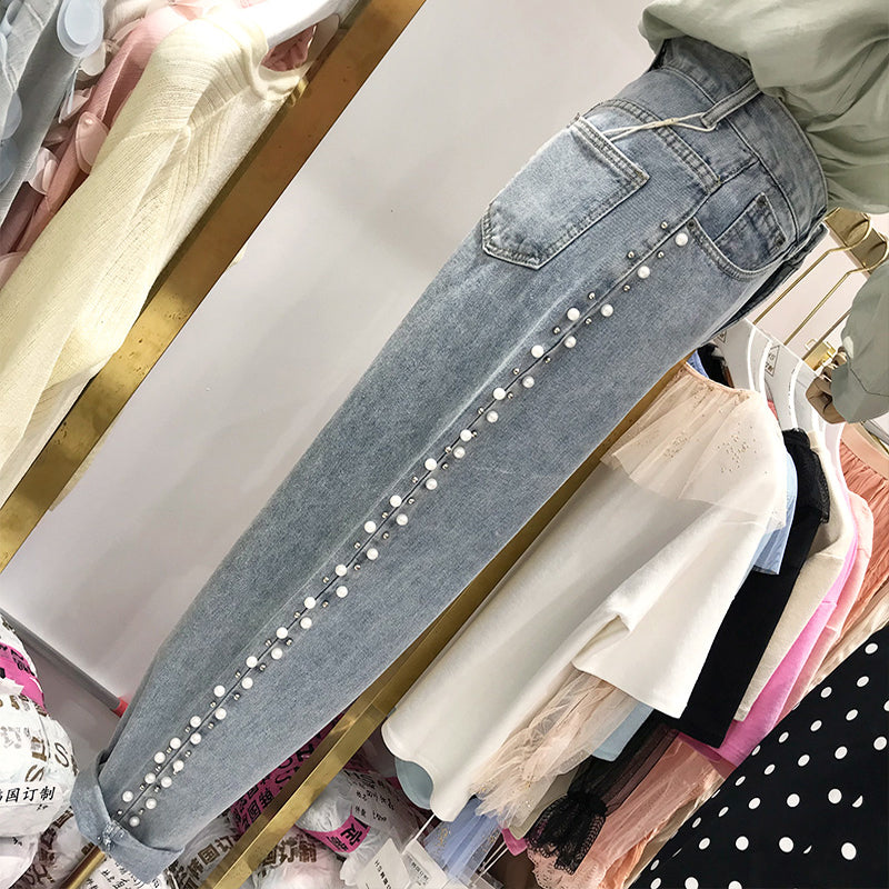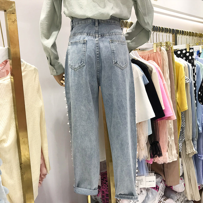 بنطلون جينز نسائي فضفاض واسع الساقين، بنطلون جينز ضيق متعدد الاستخدامات بقصة مستقيمة وخصر عالٍ