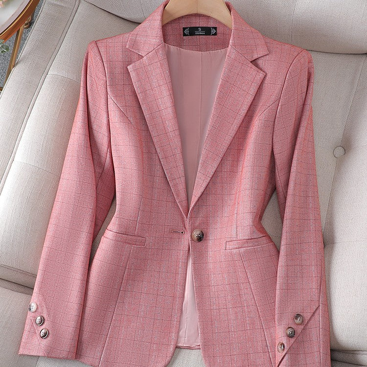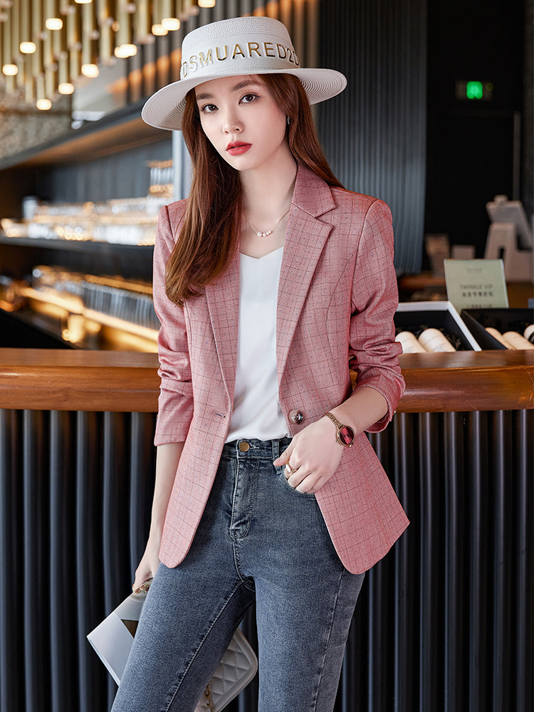 جاكيت بدلة نسائي صغير الحجم وردي اللون بنقشة مربعات