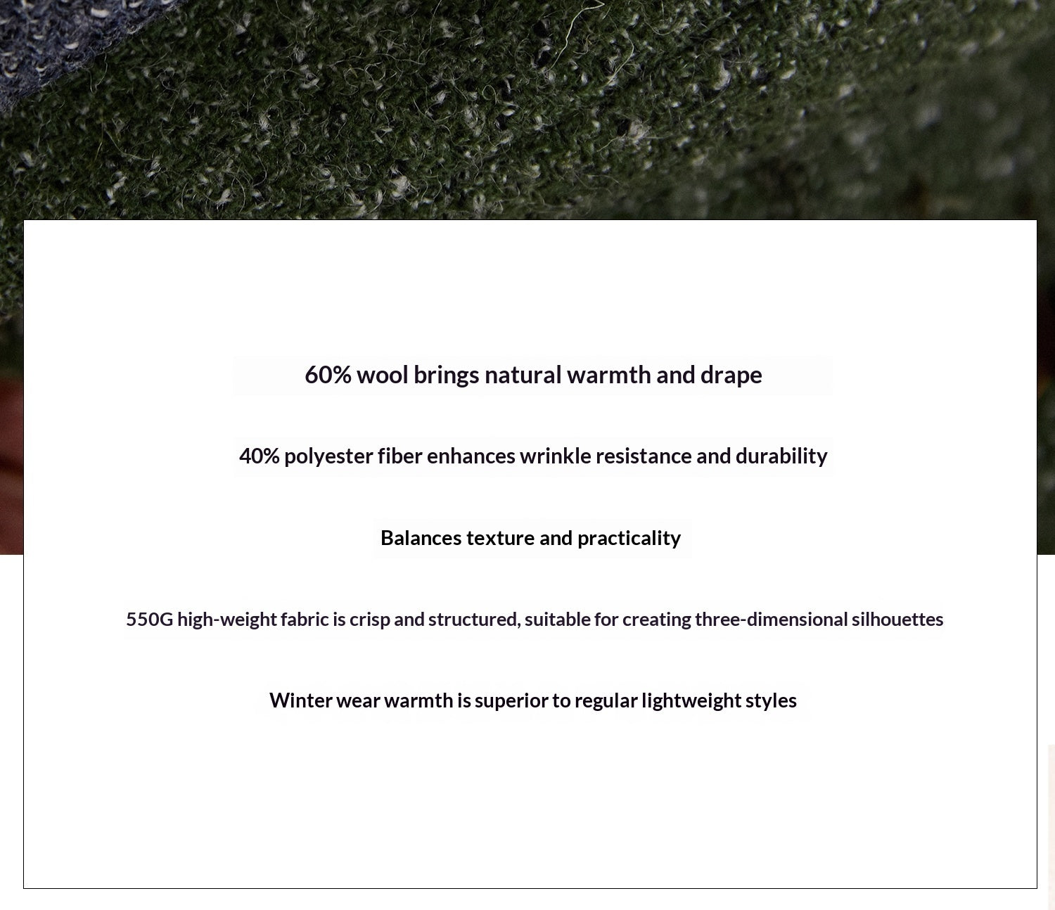 تركيبة الخامة: 60% صوف، 40% بوليستر
