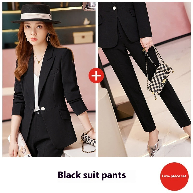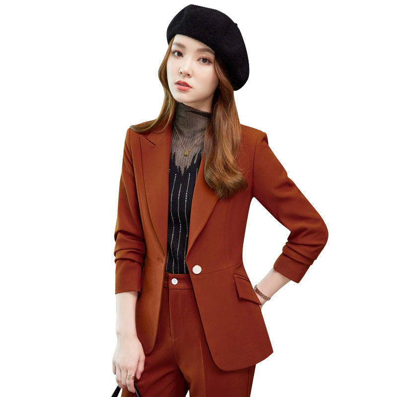 Tailleur-pantalon deux pièces pour femme, style blazer.