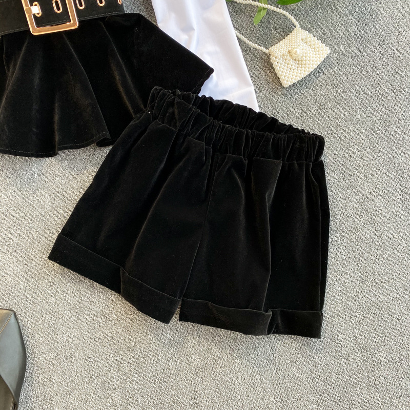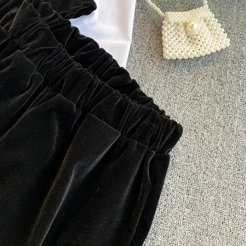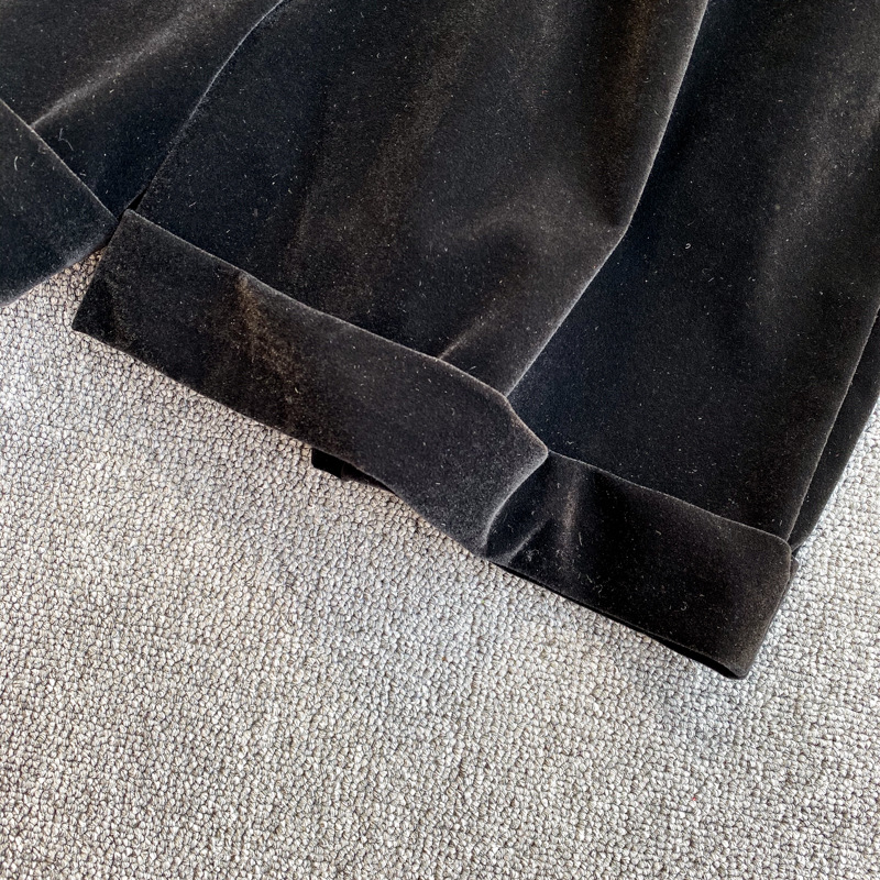 Pantalon deux pièces en velours à jambes larges et surpiqûres contrastées