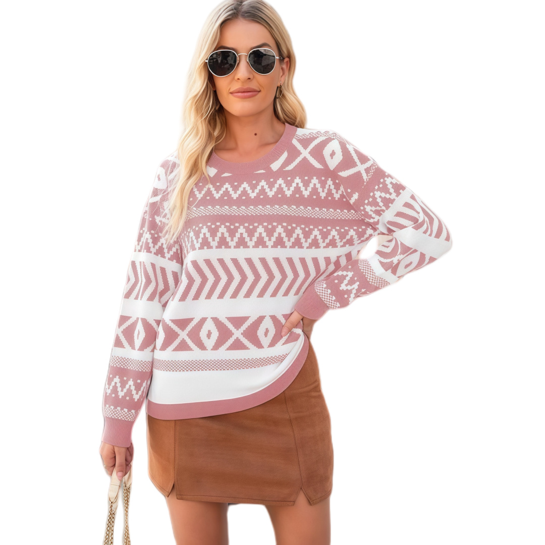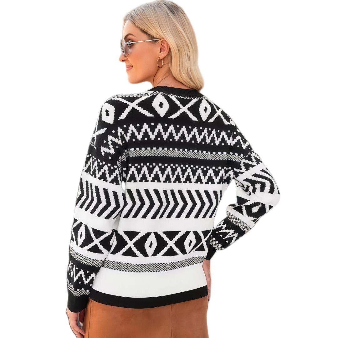 Pull en maille à manches longues et col rond au style intellectuel unique