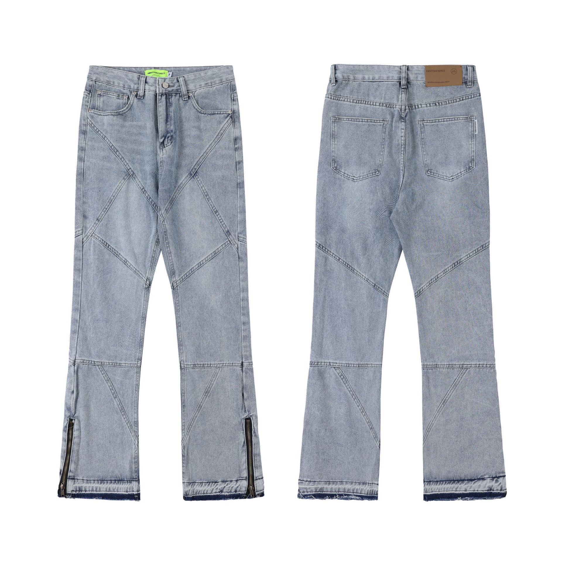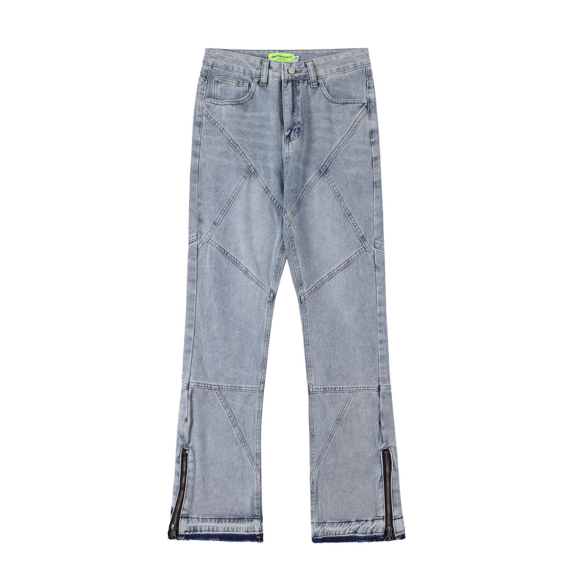 Pantalon en denim délavé droit ample Maychao pour hommes et femmes