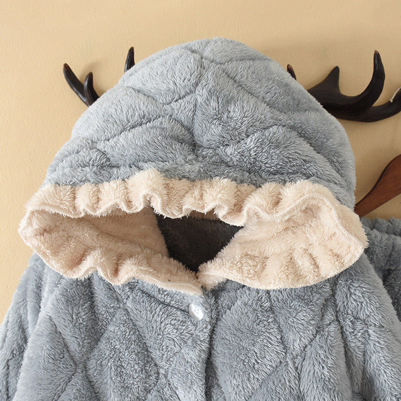 Pyjama femme grande taille en coton, velours corail épais matelassé, motif dessin animé, mi-long, en flanelle, idéal pour la maison.