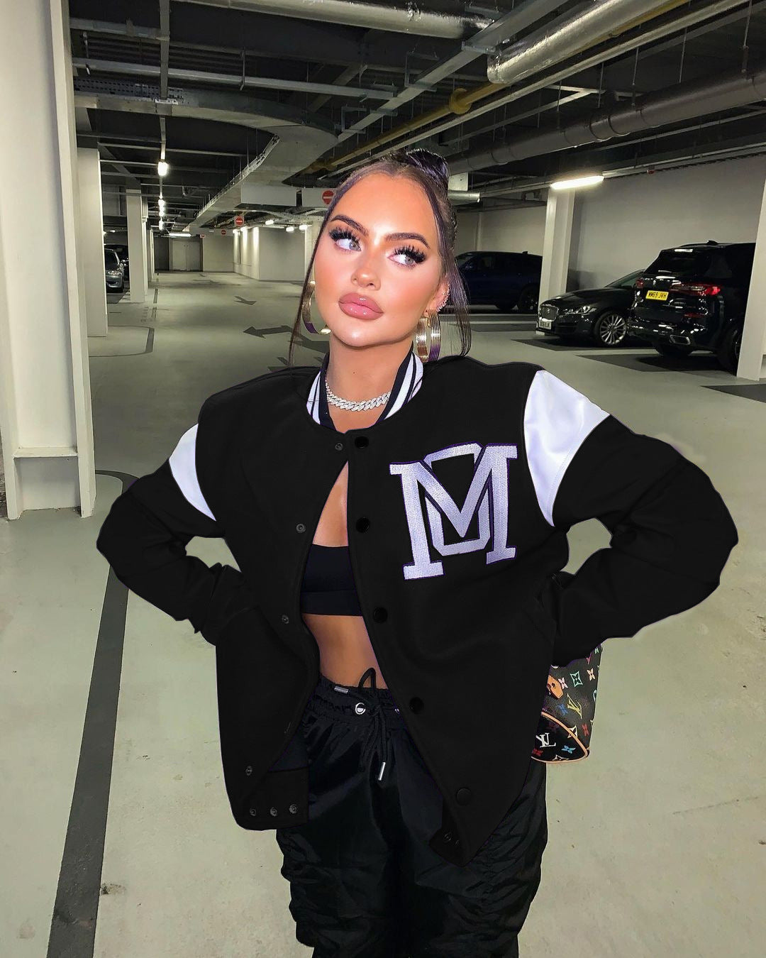 Veste de baseball unie patchwork à lettres décalées