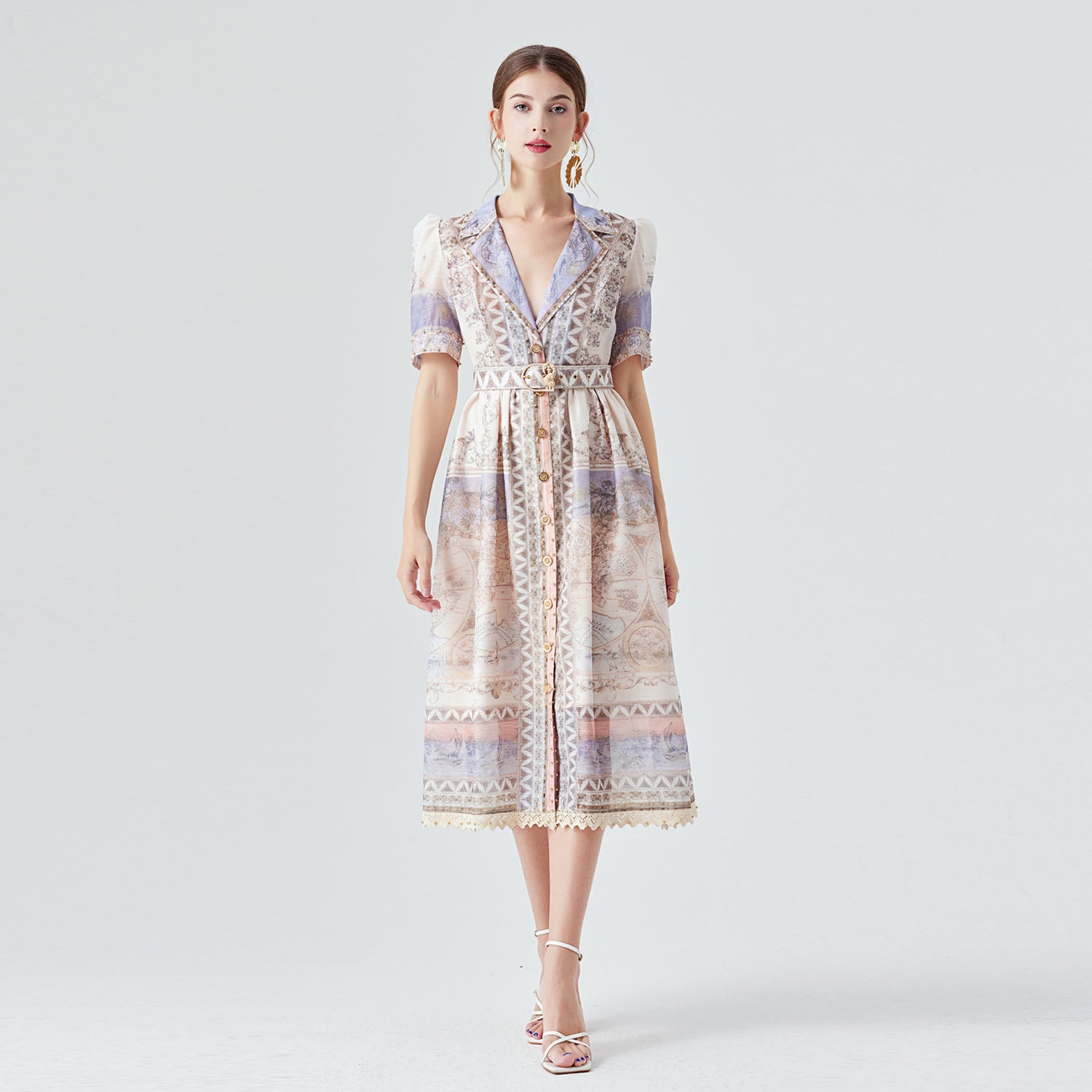 Australian Luxury High Version Stitching Lace Heavy Industry Beads Midi Dress