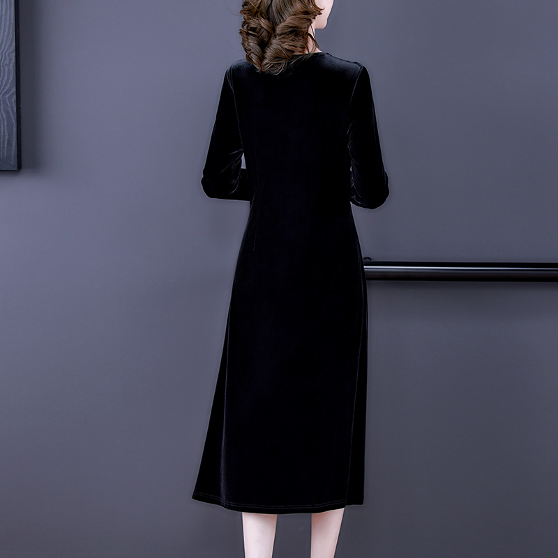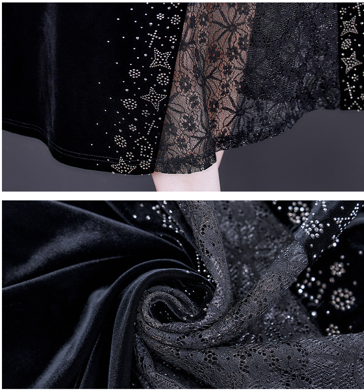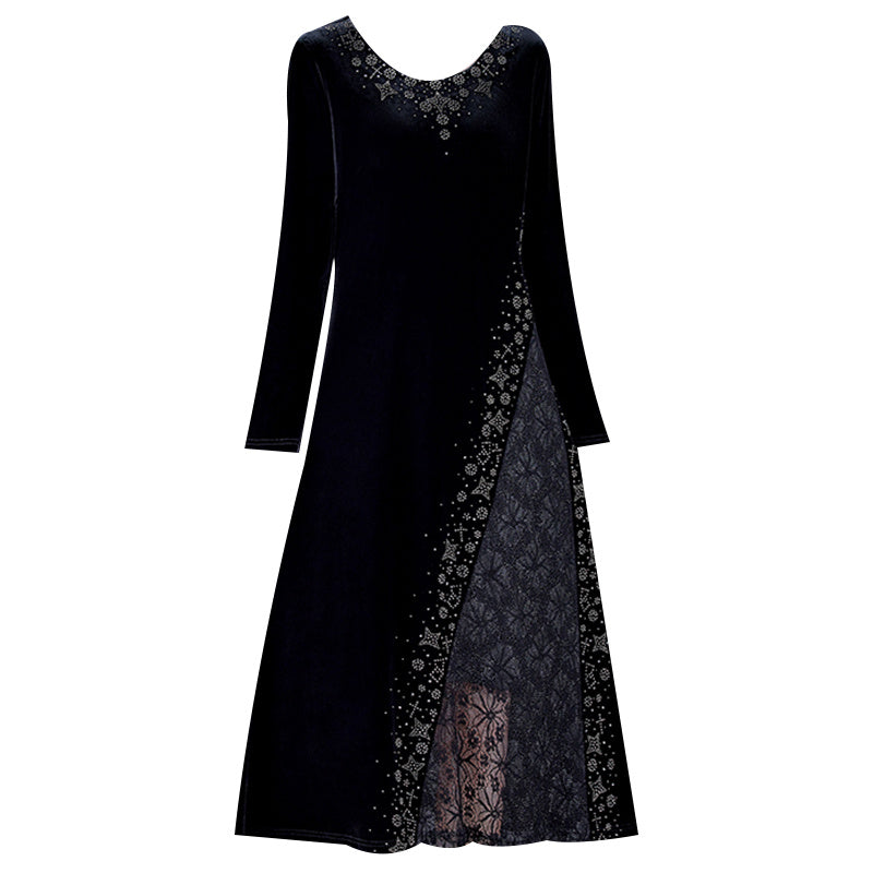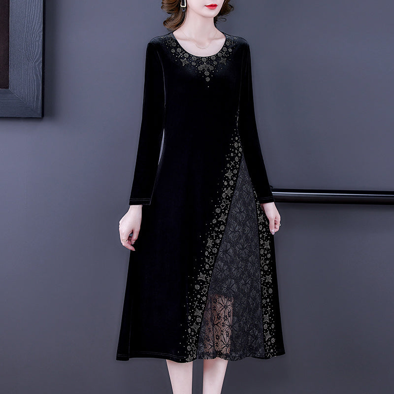 Autumn And Winter Plus Velvet Padded Lace Long-sleeved Dress