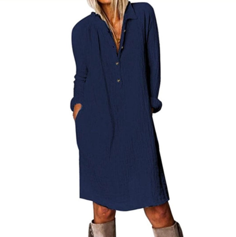 Cotton And Linen Long Sleeve Dress