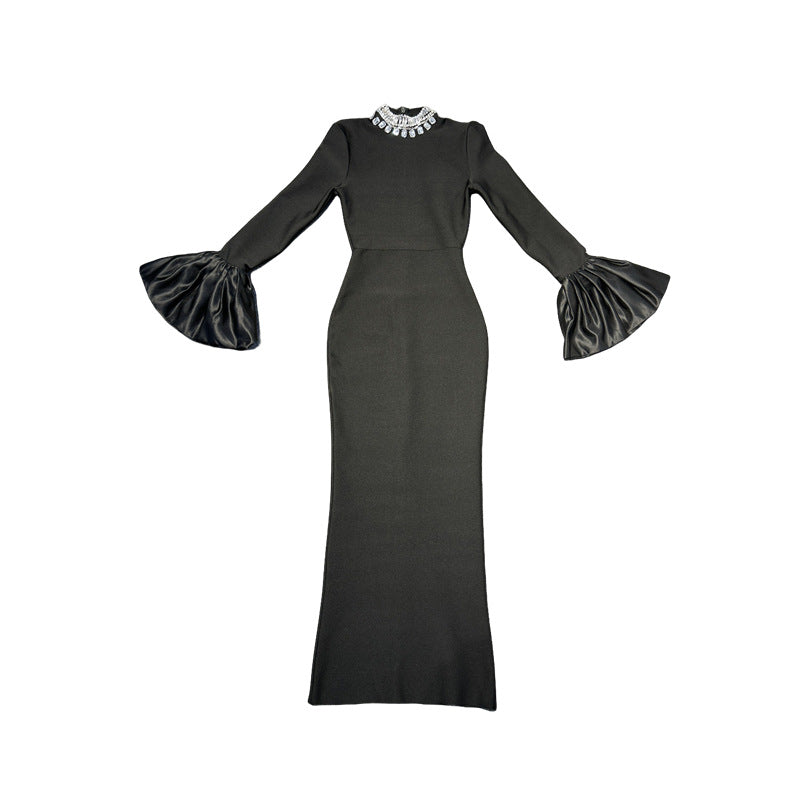 Customized Diamond Long Sleeved Heavy Industry Bandage Dress