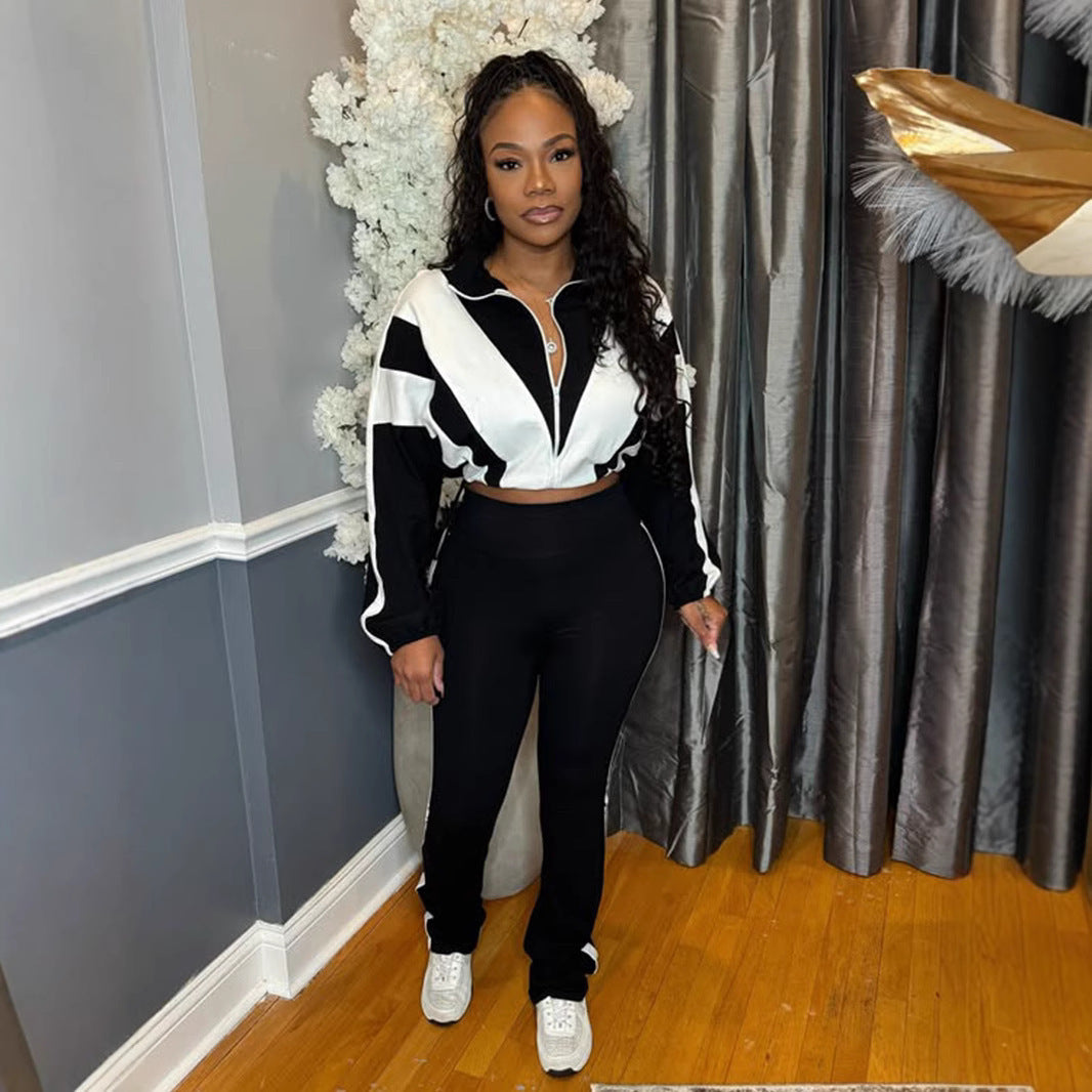 Elastic Buckle Waist Color Block Stitching Contrast Color Sports Casual Two-piece Suit