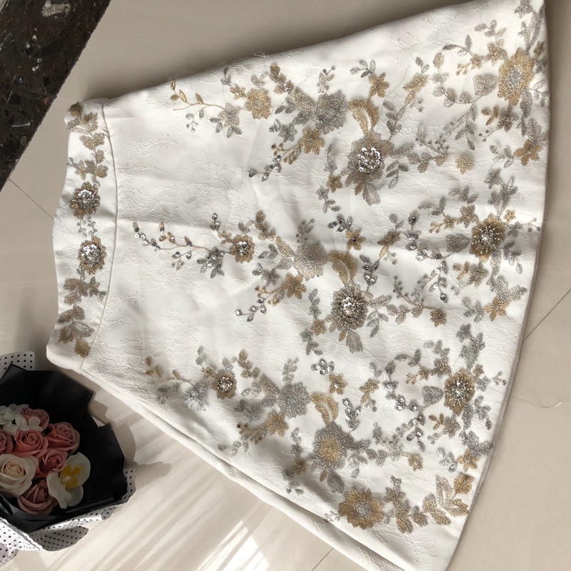 Embroidered slim A-line skirt