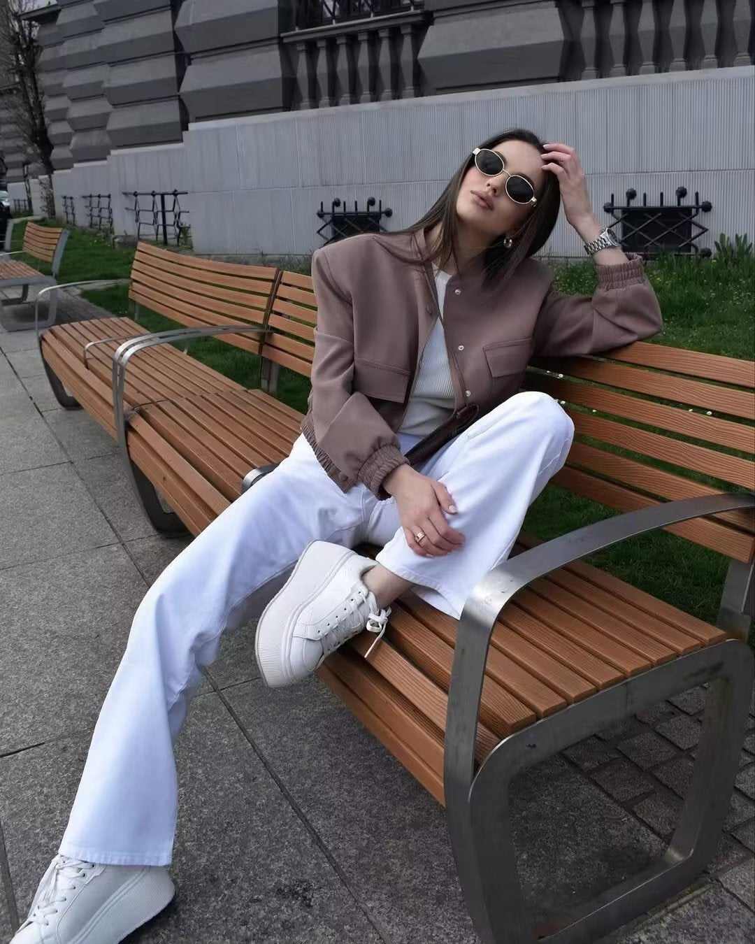 European American Summer New Large Pocket Flight Jacket A- Line Skirt