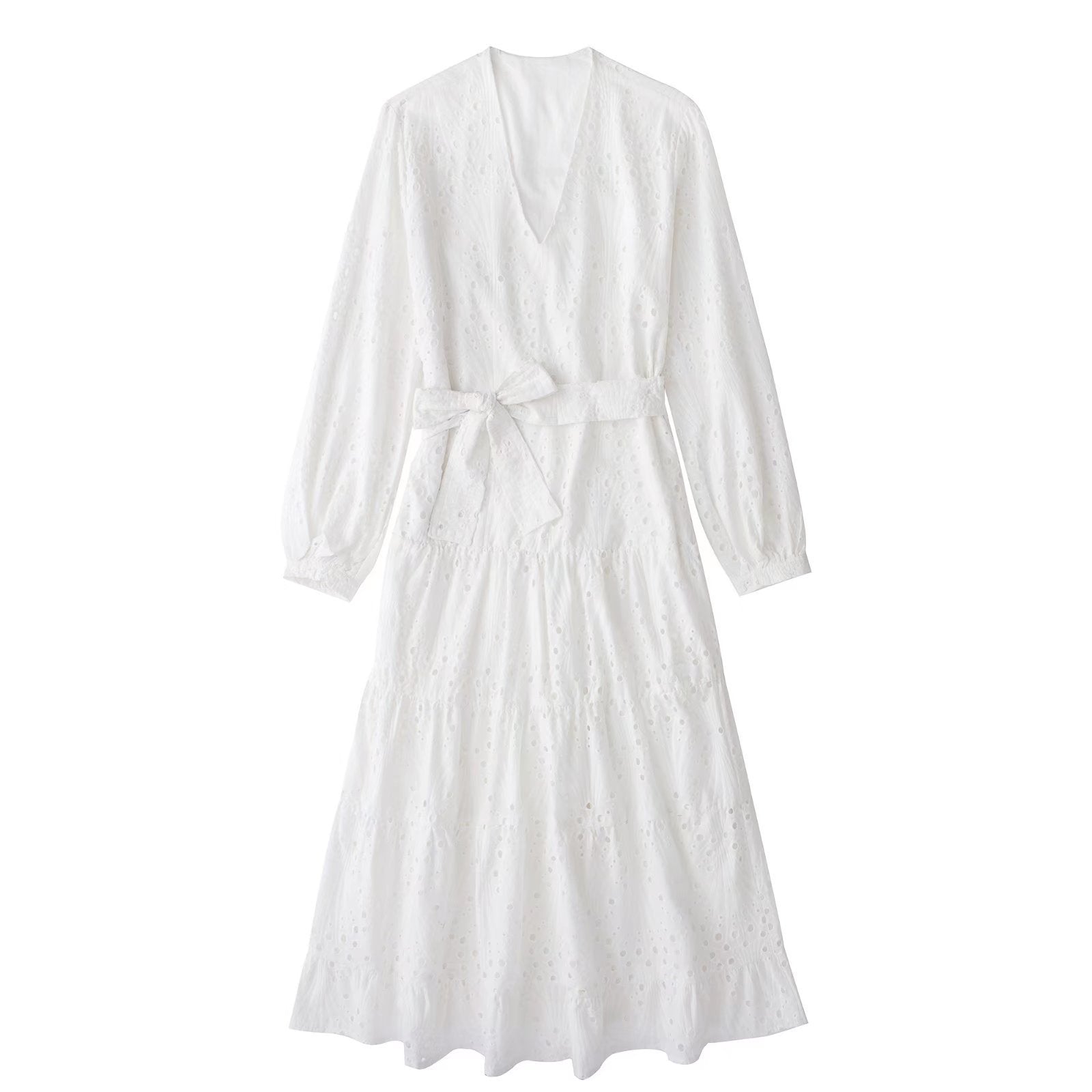 European And American Hollow Embroidered Midi Long Sleeve Dress