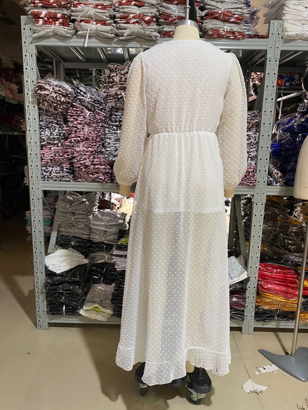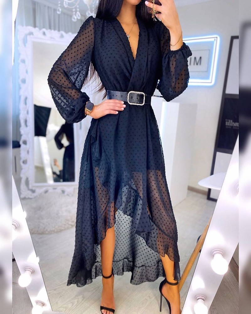 Fashion and elegant dress with waist polka dot V-neck