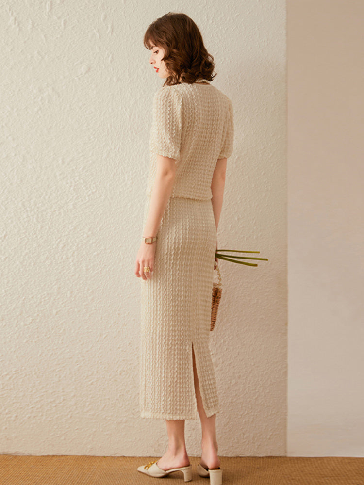 Fashion Casual Set Summer New Texture T-shirt Split Skirt