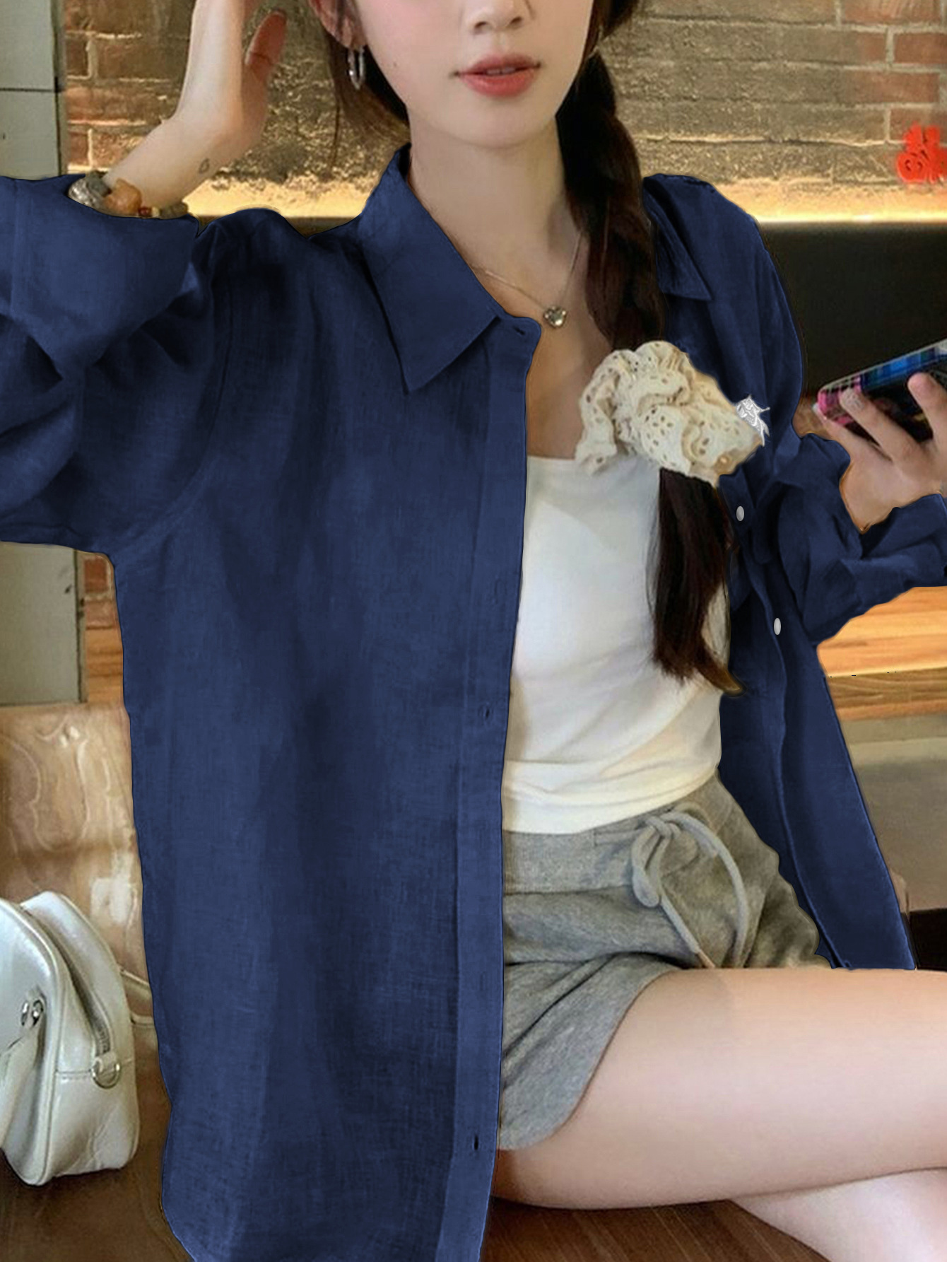 Fashion Casual Solid Color Long Sleeve Blouse