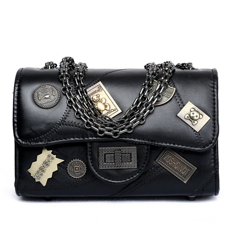 Fashion sheepskin splicing chain bag