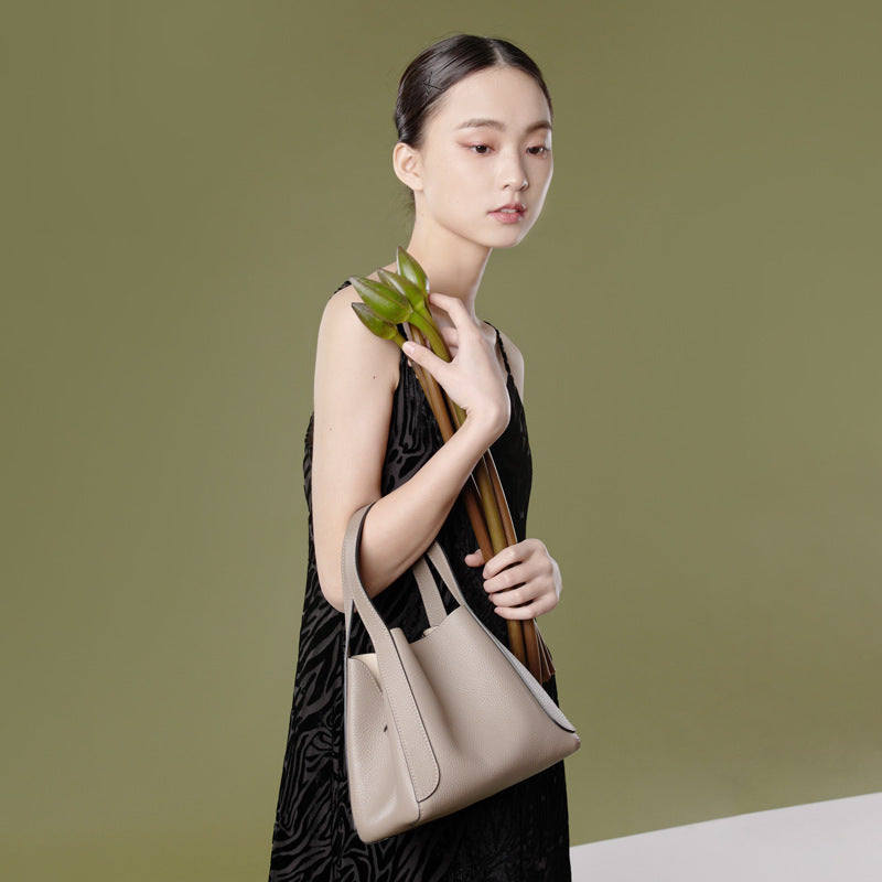 First Layer Cowhide Bucket Women's Bag Commuter Portable
