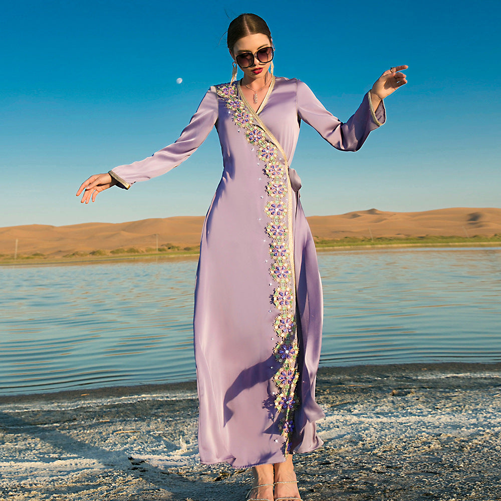 Fog Purple New Heavy Industry Hand Sewn Diamond Middle East Dress