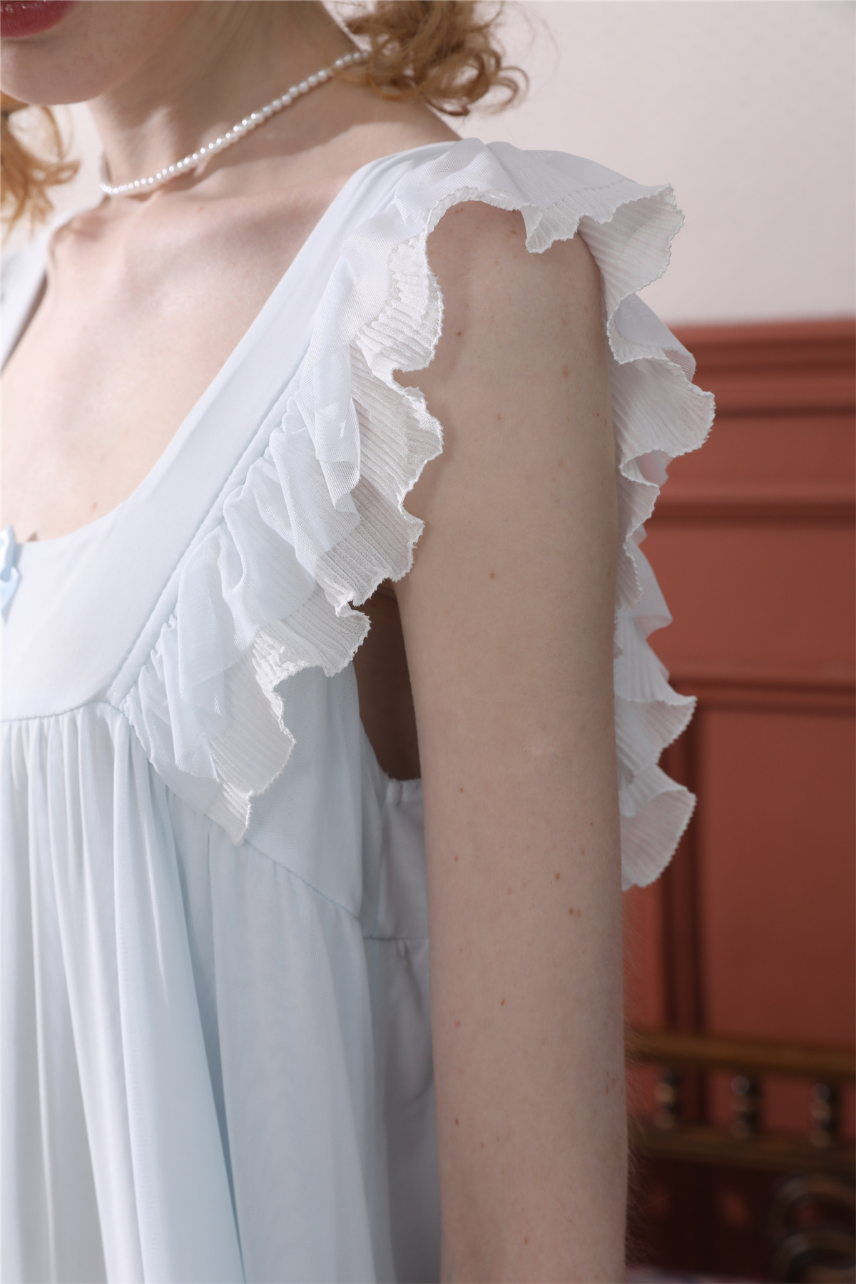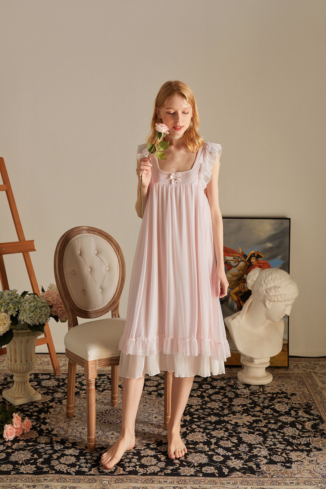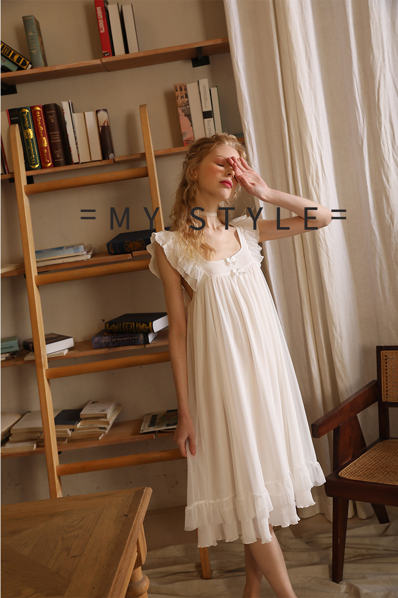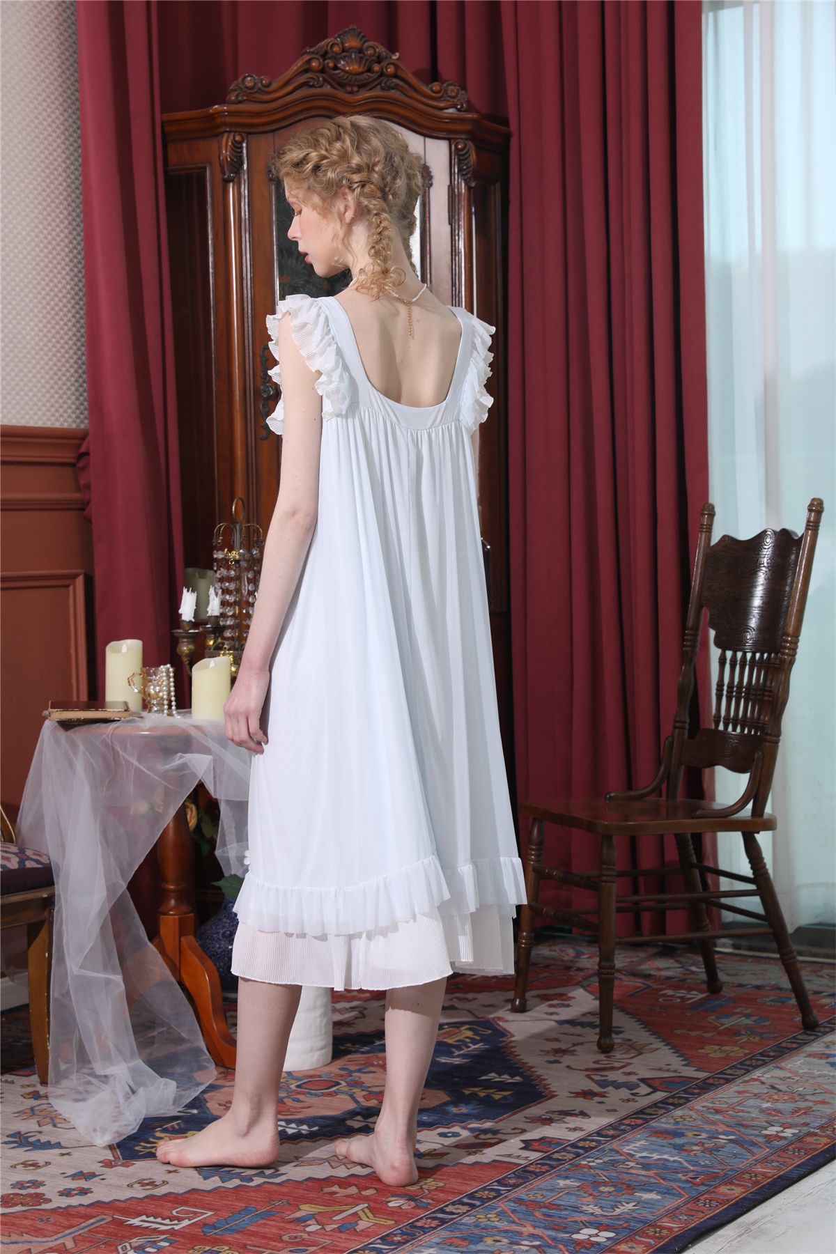 French Royal Style Summer Thin Sleeveless Nightdress Lace Princess White Pullover Pajamas Home Skirt Princess Dress
