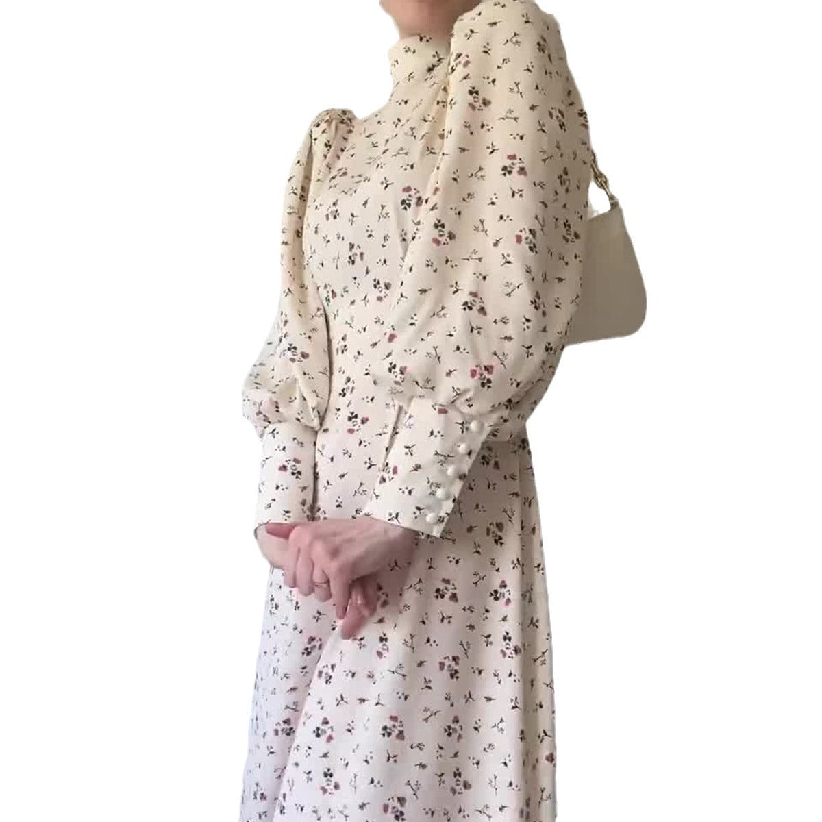 Gentle Loose Lace-up Floral Sense Long Sleeve Dress