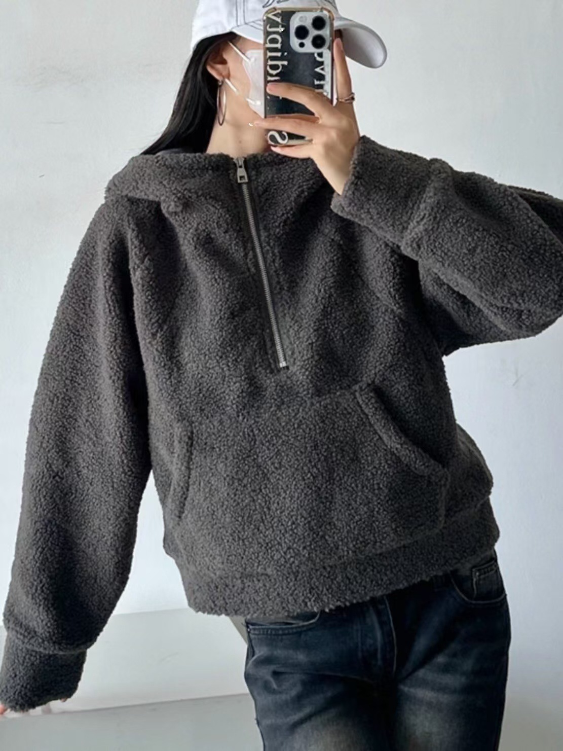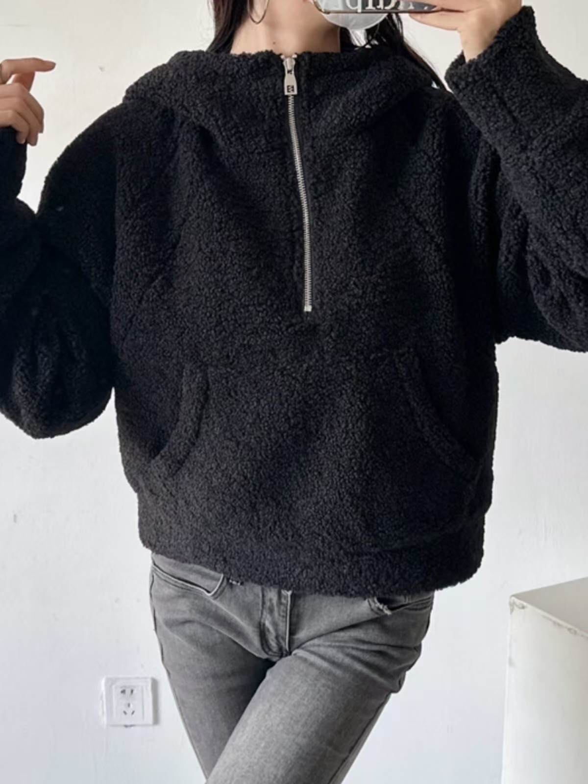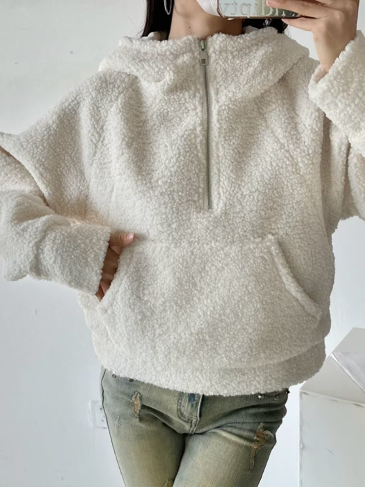 Girls Relaxed-fit Half-zip Faux Lambswool Hoodie