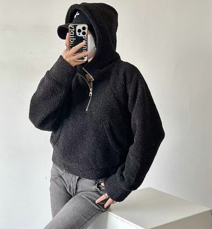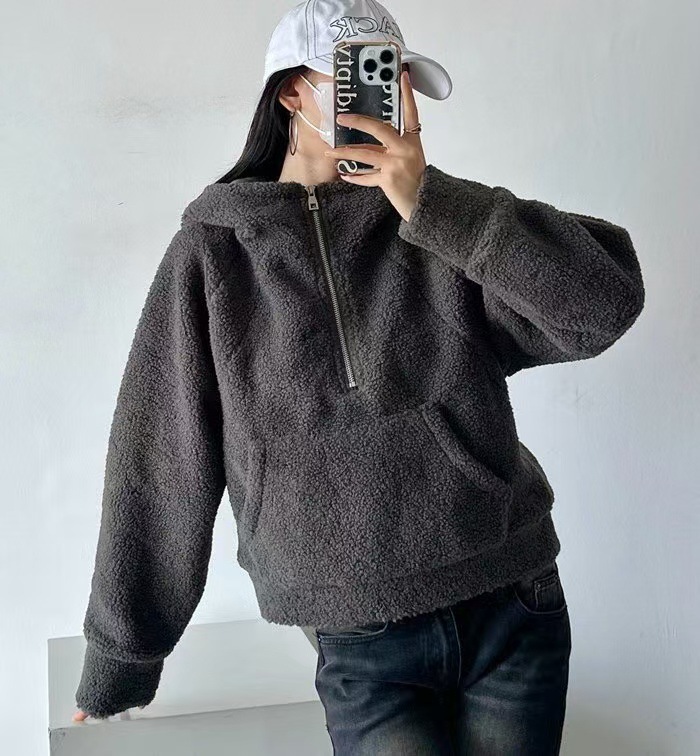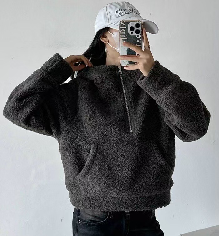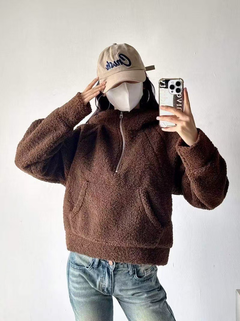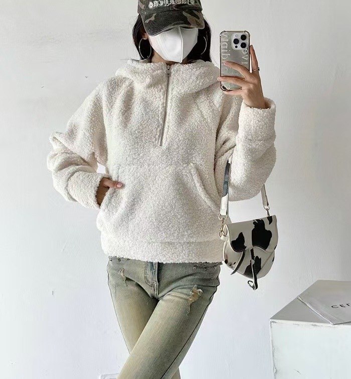 Girls Relaxed-fit Half-zip Faux Lambswool Hoodie