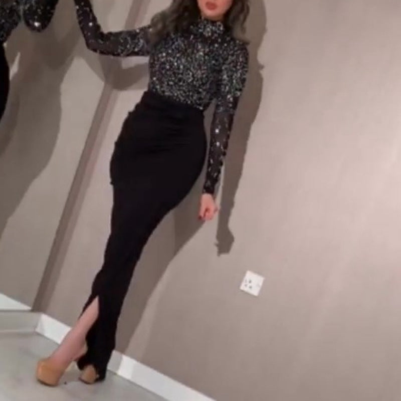 Gold Bag Hip Ball Gown Long Sleeve Dress