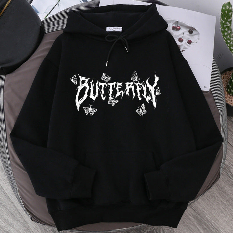 Gothic Letter Butterfly Loose Couple Sweatshirt