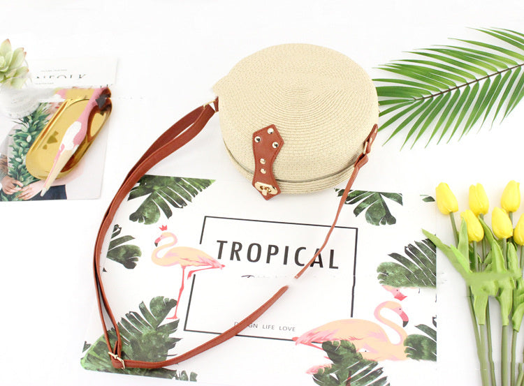 Grass leisure woven handbags retro leisure messenger straw woven bag beach bag