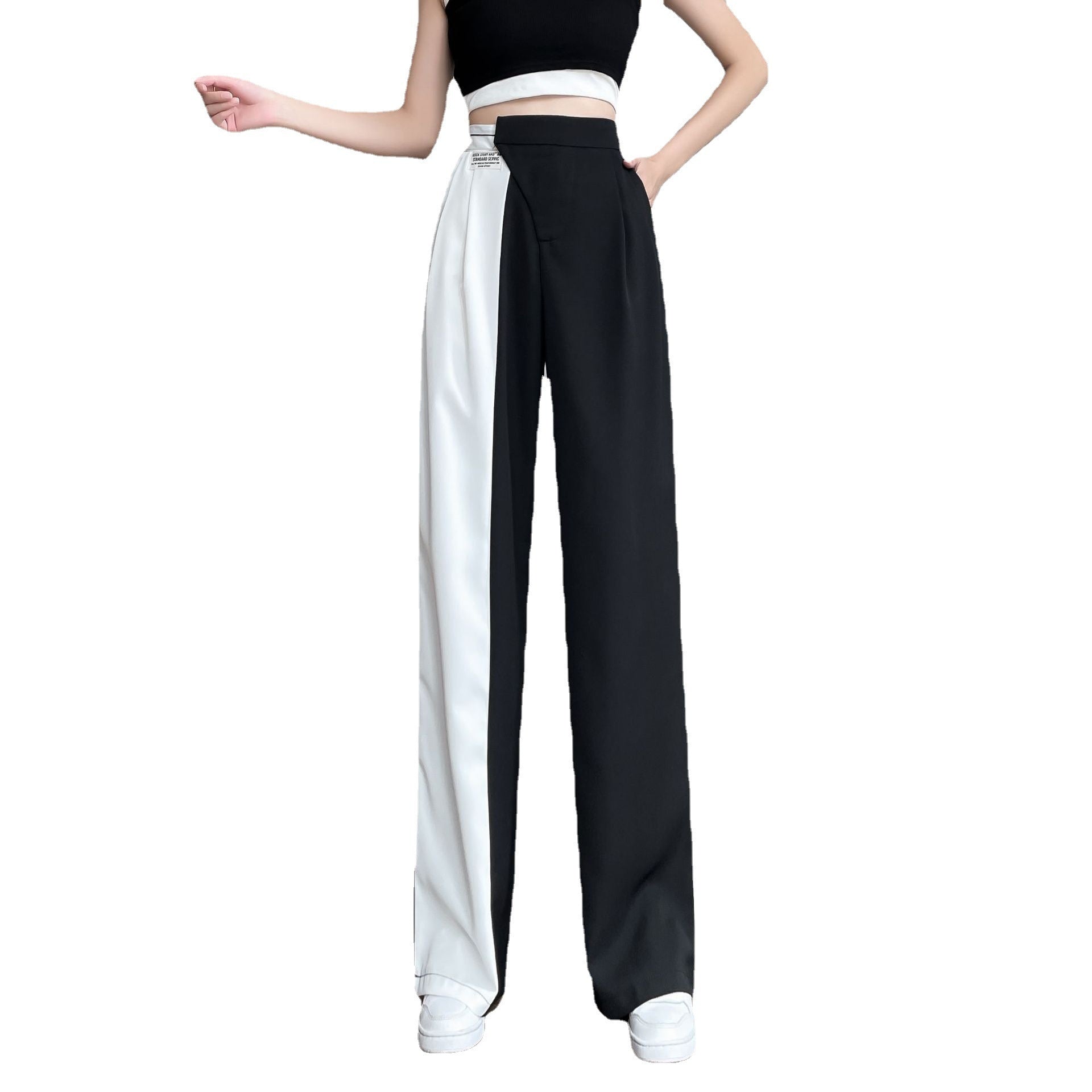 High Waist Retro Color Matching Suit Drape Straight-leg Pants