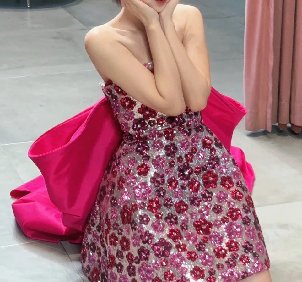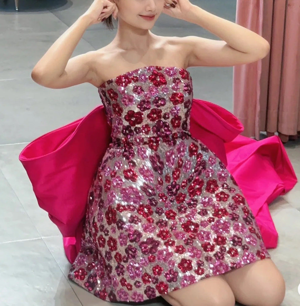 Host Starry Sequins Beaded Toast Clothing Dress