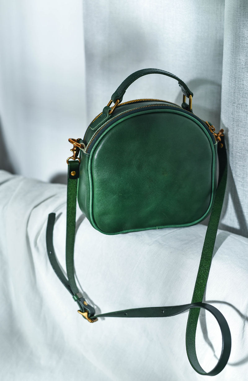 Japanese-style Retro Original Design Double Zipper Handmade Genuine Leather Skeleton-skin Crossbody Bag