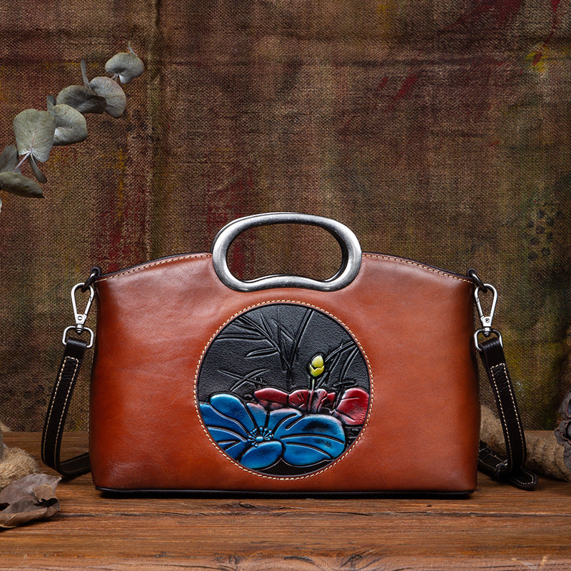 Johnature Genuine Leather Women Bag Vintage Embossed Handbag New Versatile First Layer Cowhide Large Capacity Shoulder Bags