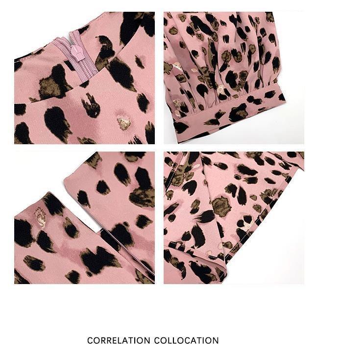 Leopard Print Puff Sleeve Dress Summer New Round Neck Lace-up Waist-controlled Slimming Temperament Split Long Dress