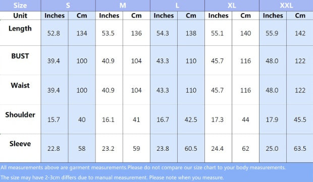 1. Asian sizes are 1 to 2 sizes smaller than European and American people. Choose the larger size if your size between two sizes. Please allow 2-3cm differences due to manual measurement. 2. Please check the size chart carefully before you buy the item, if you don't know how to choose size, please contact our customer service. 3.As you know, the different computers display colors differently, the color of the actual item may vary slightly from the following images.