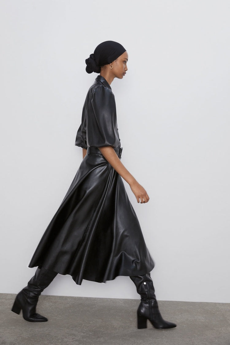 Long skirt with belted temperament