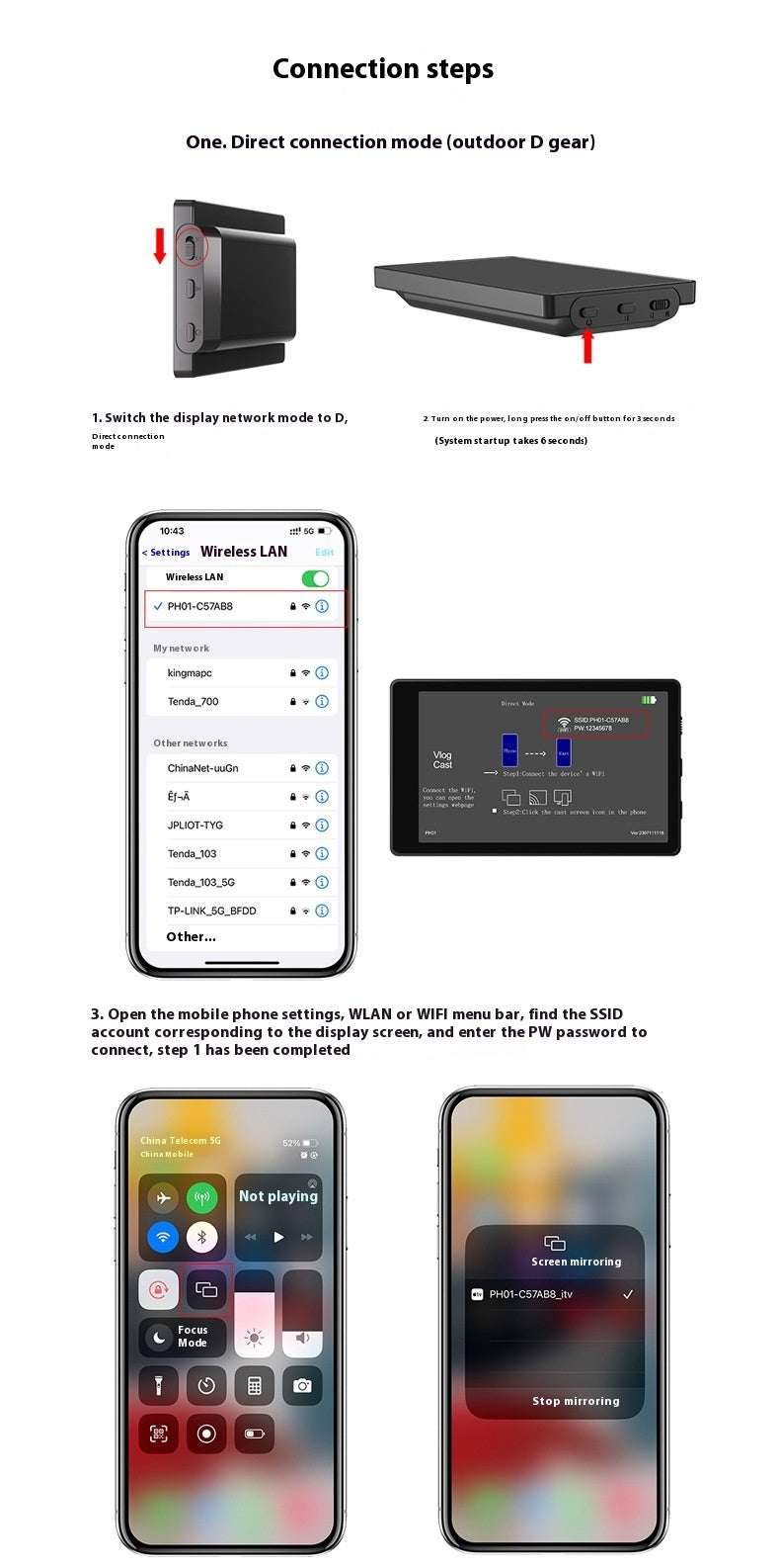 Packaging box+mobile phone display screen+mobile Bluetooth remote control+mobile phone clip+storage bag+charging cable+manual