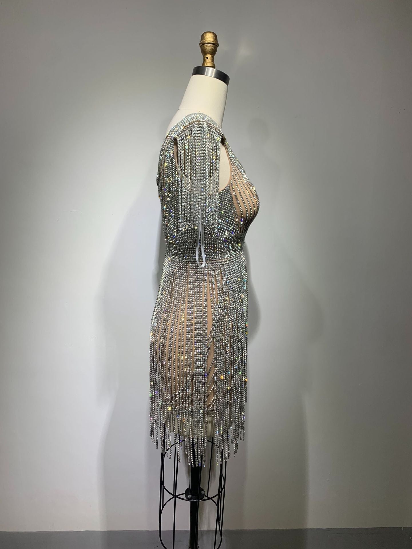 New Low Cut Tassel Hollow-out Tight Niche Diamond Sheath High Quality Dress