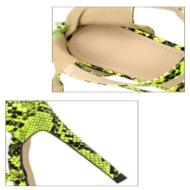 New Slim Snake Print Hollow High Heel Roman Sandals